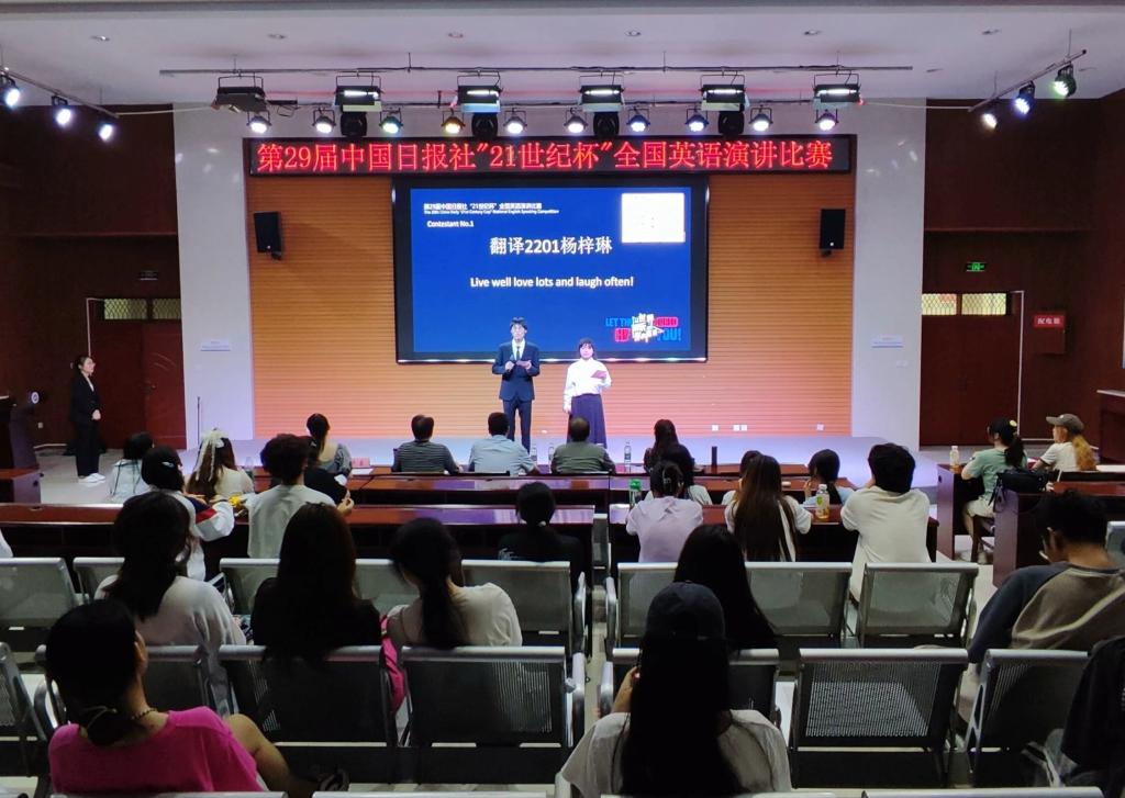 5月27日,外国语学院在鄠邑校区崇文楼举办了第29届“21世纪杯”全国英语演讲比赛暨bat365中文官方网站校赛决赛。外国语学院副院长陈武、英语系主任钟泽波、大学外语第二教学部主任彭健,大学外语第二教学部教师毕莹,以及辅导员陶李担任评委,12名参赛选手以及工作人员参加此次演讲大赛。