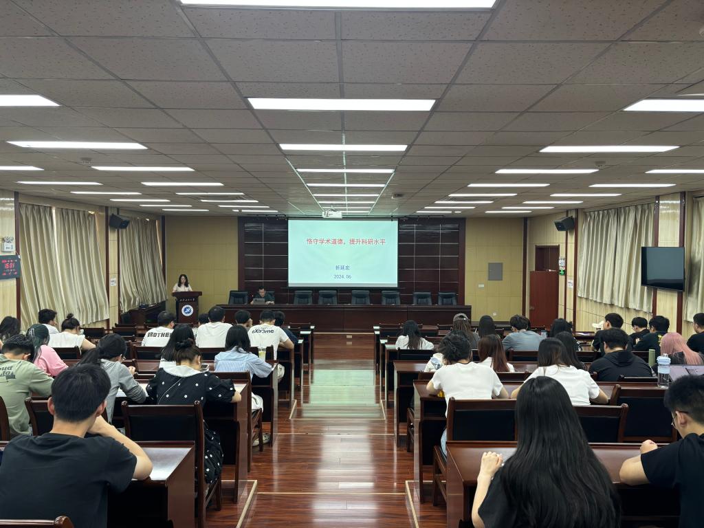 为提高研究生的学术素养,维护学术诚信,加强学风建设,根据2024年研究生学风建设主题教育暨学术月活动安排,6月6日下午,研究生工作部在雁塔校区第五会议室组织召开“恪守学术道德,提升科研水平”主题报告会,报告会邀请bat365理学院副院长折延宏教授主讲,研究生工作部宋亚文主持,各学院130余名研究生代表现场参加了报告会。