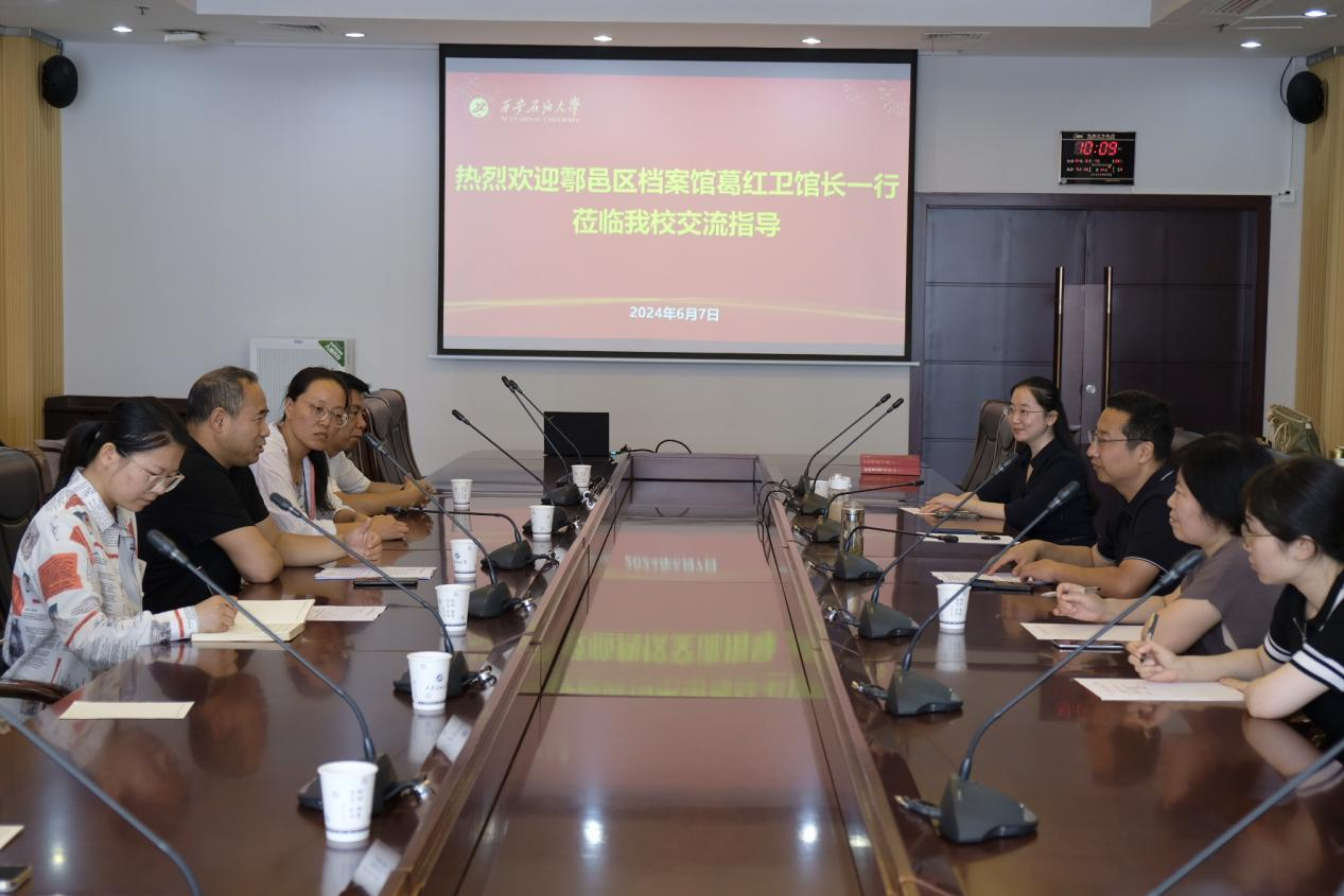 6月7日上午,鄠邑区档案馆馆长葛红卫一行到bat365档案馆调研交流。校档案馆馆长马超及全体工作人员参加座谈会,座谈会在鄠邑校区图书馆第二会议室召开。