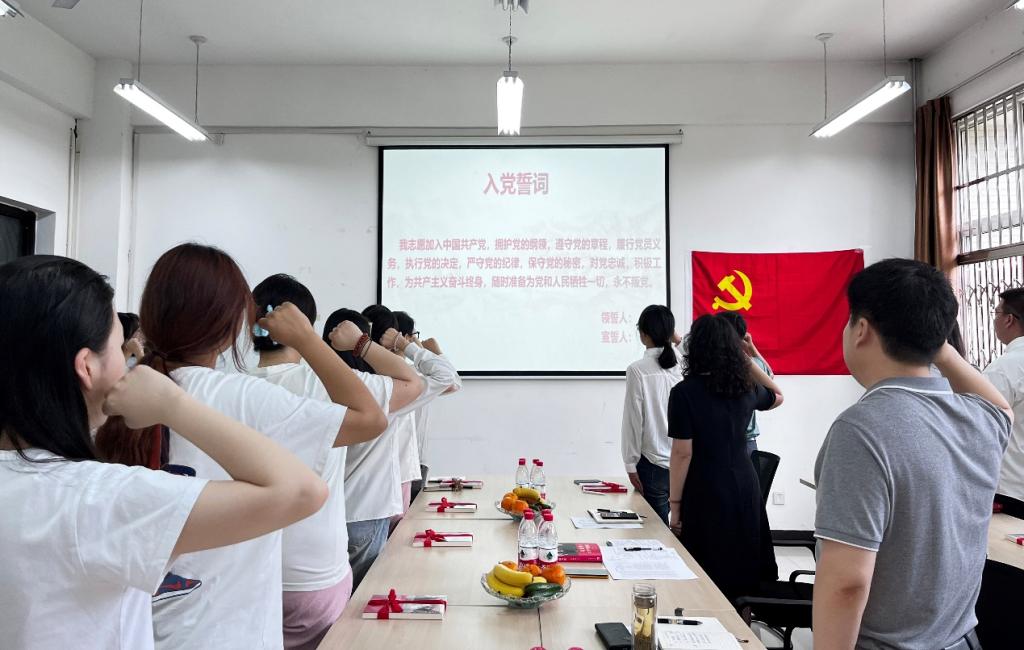 王业青带领全体党员面向党旗,重温入党誓词。希望同学们:一是率先垂范,发挥关键少数的作用,共同营造文明和谐有序毕业离校氛围;二是坚持奋斗,发挥共产党员先锋模范作用,努力实现自己的人生价值;三是心怀感恩,厚植知校爱校荣校情怀,毕业后持续关心支持学院的发展。