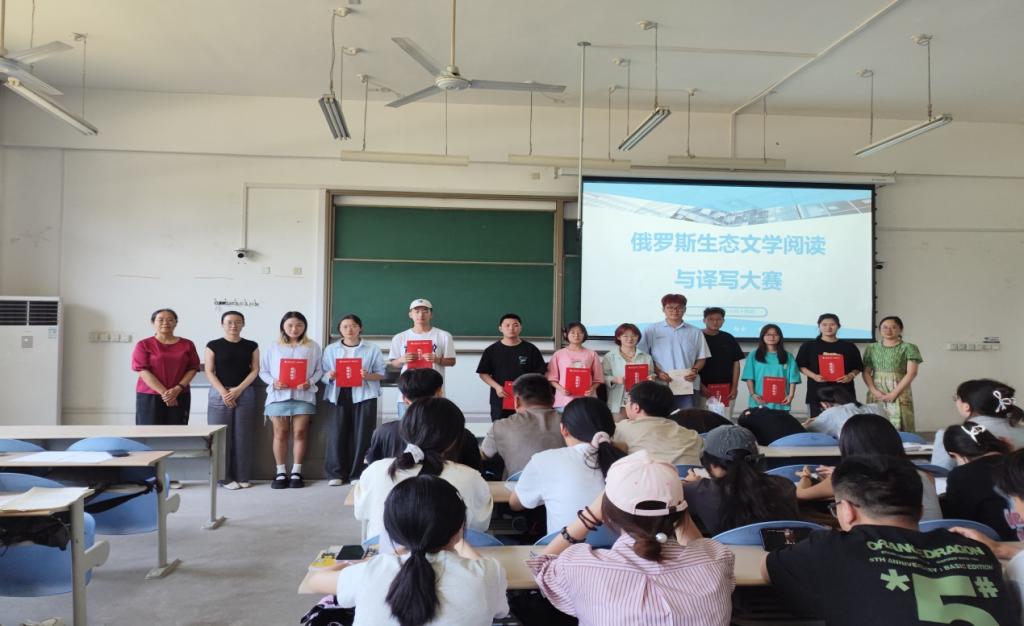 6月14日,外国语学院成功举办“俄罗斯生态文学与译写大赛”颁奖仪式。此次大赛旨在借助文学教育提升学生对俄罗斯生态文学的兴趣,增强其生态意识和环保责任感;培养学生的翻译能力和文学创作能力;通过研读名家经典之作,加深对俄罗斯文化的认识与了解,以促进中俄文化交流。参赛者主要是俄语专业学生,他们通过阅读原文小说和基于阅读的创意性写作展示自己的丰富想象力、出色的语言表达能力,以及对生态关系的深刻理解。
