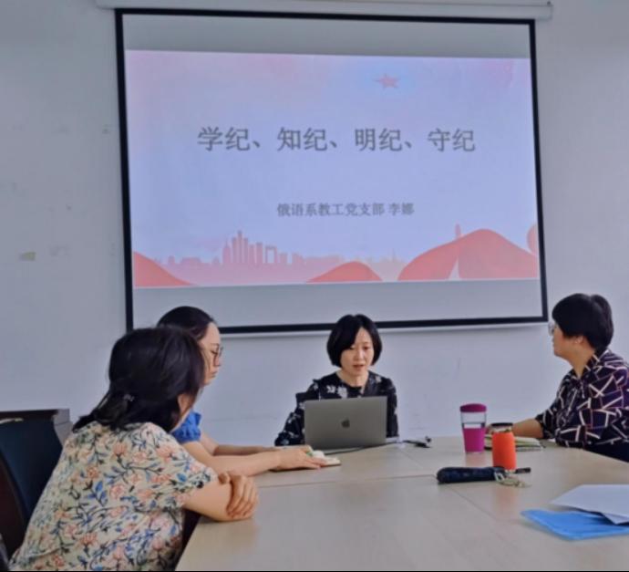 为落实学院党委关于党纪学习教育和教职工政治理论学习的工作部署,增强党员“学纪、知纪、明纪、守纪”思想自觉和行动自觉。6月17日上午,外国语学院俄语系教工党支部在鄠邑校区崇文楼314会议室开展党纪学习教育,俄语系教工党支部全体党员参加活动。