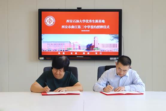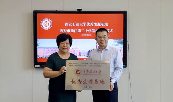 为加强学校本科招生宣传工作,持续推进优秀生源基地建设,6月18日上午,计算机学院党委书记庞秉谦、教务处副处长陈熙等一行4人赴西安市曲江第二中学举行“优秀生源基地”签约授牌仪式。