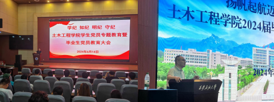 传情:各本科生党支部召开主题党日活动,话别毕业生。毕业生党员为学弟学妹提出了好的建议和意见,学弟学妹为学长送上了祝福。5月20日-5月21日,学院举办考研交流会和学习经验交流会,2024届优秀毕业生代表蒋卓翔、郑培林等同学,分别为低年级同学分享考研经验和学习、生活和工作经验。6月13日下午,学院举行少数民族学生交流会,少数民族毕业生代表依米任江·马木提、肖亚兰、覃赞州、马翔等分享了大学四年的学习、生活、求职、考公等心得和经验。6月17日,学院在大学生活动中心举办“土木年华,共赴前程”毕业生欢送晚会,热烈庆祝2020级同学顺利毕业,欢送他们踏上新征。
