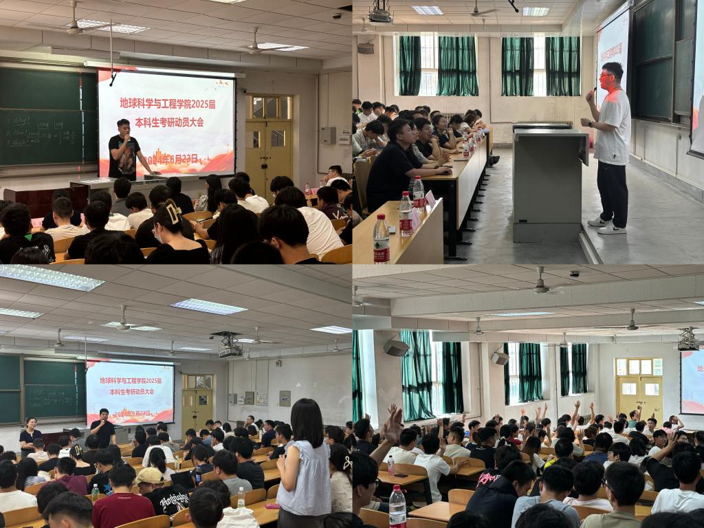 为帮助学生更好地了解考研招生政策,明确当前考研形势,规划未来发展方向,6月23日下午,地球科学与工程学院在鄠邑校区博览楼A139教室举办研究生招生宣讲会暨2025届本科生考研动员大会。学院党委副书记王莹、副院长党伟、石油地质系主任郭小波、应用地球物理系副主任杨飞龙、地质工程系教师宫雪、学生工作办公室主任姜楠、2021级辅导员徐泽阳及2025届全体本科生参加了此次会议。