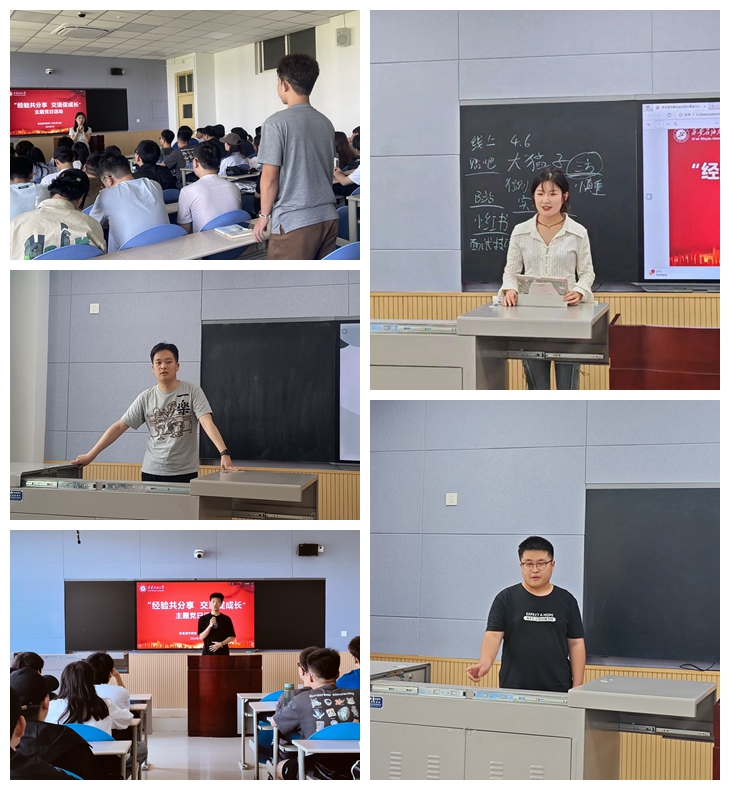 5月8日-11日,学院各学生党支部组织开展“经验共分享,交流促成长”主题党日活动。各党支部邀请2024届考研就业典型学生为2021级学生进行经验分享交流,使学院2025届毕业生对未来具有更加清醒的认识与规划,也为同学们提供了更加高效的学习方法和宝贵经验,增加了有意向考研同学们的信心,还让有就业意向的同学们了解到通过合理规划职业生涯、掌握相应求职技巧,才能为将来能更好就业奠定基础。