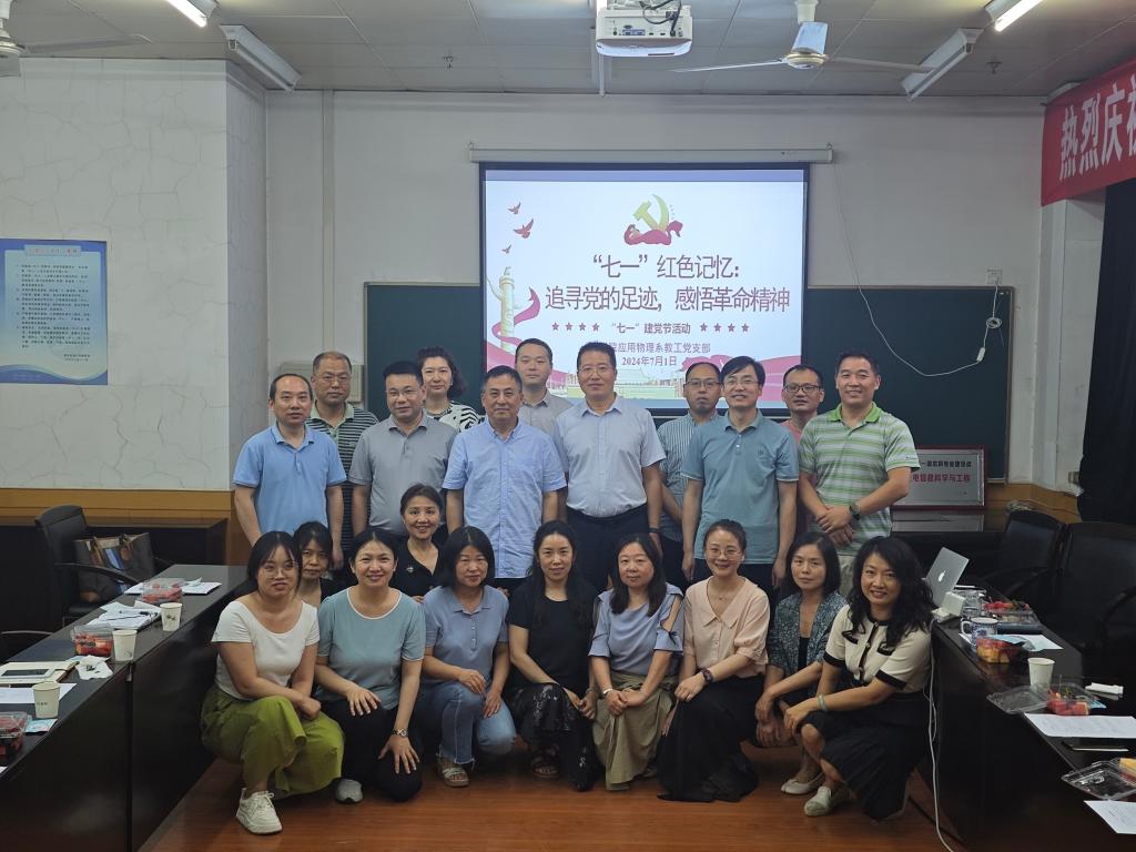 为庆祝中国共产党成立103周年,激励全体党员教师牢记党的宗旨和入党初心,7月1日下午,理学院应用物理系教工党支部隆重举办迎七一“追寻党的足迹,感悟革命精神”主题党日活动。新能源学院党委书记廖敏,理学院党委书记席利哲、院长傅海威、副院长陈国祥应邀出席了本次活动。