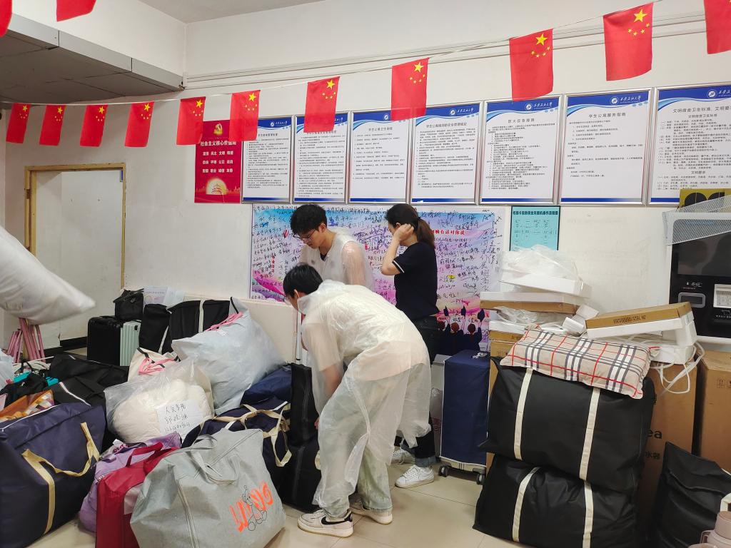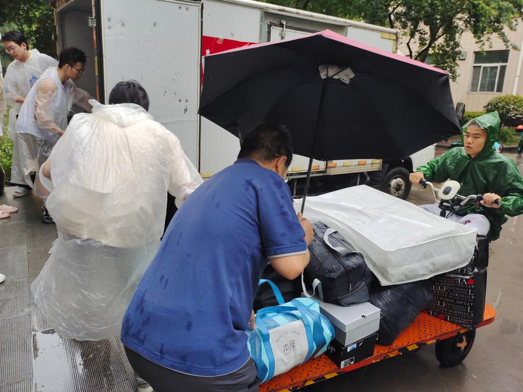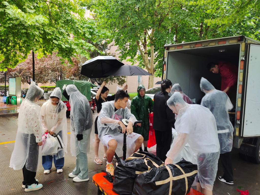 同心协力,共克时艰。在搬迁过程中,还涌现出了许多感人至深的故事。志愿者们不顾自己身体的疲惫,冲锋在前,先人后己,全天候投身志愿服务队伍,坚持帮助每一位学生搬运行李。他们身着白色雨衣,穿梭在宿舍楼之间,用他们纯洁无瑕的内心和真情,奉献自己的力量。不少同学在受到帮助后,也主动加入志愿服务行列,自发提出要成为“行李引导员”,主动帮助同学看管、分发行李,用自己的实际行动回馈这份关爱与温暖。这种相互扶持、共同奋斗的精神,成为了搬迁工作中最宝贵的财富。