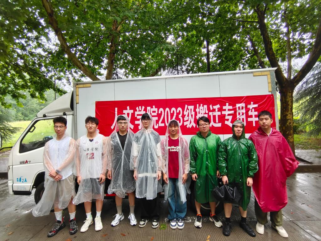 风雨无阻,严密筹备。在学校统一部署2023级本科生宿舍搬迁工作下,人文学院领导班子高度重视,迅速成立搬迁工作小组,精心策划、周密部署。6月28日至7月4日,学院三次展开专题研究会,就宿舍搬迁方案、分配方案、后勤保障、应急预案等关键工作进行研究和安排,院学工队伍分别承担现场协调、后勤餐食、应急处理等角色。面对预报中的强降雨天气和繁重的搬迁劳动,学院号召广大学生成立志愿者队伍,并提前为每位学生准备一次性雨衣、纯净水,租用厢式货车、三轮车、平板车等多种搬运工具,确保搬迁过程的安全与顺畅。同时,通过线上线下相结合的方式,学院召开年级大会进行详细的搬迁指导和安全教育,确保每位同学都能明确搬迁流程,做好充分准备。