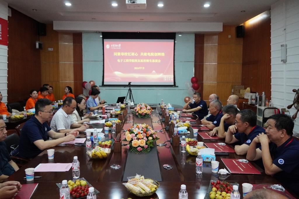 7月27日下午,在学校隆重举行恢复办学首届学生毕业40周年纪念暨2024校友秩年返校共商高质量发展大会之际,电子工程学院在雁塔校区第四会议室召开了“同聚母校忆初心,共建电院创辉煌”2024校友秩年返校师生恳谈会。校党委副书记张木、副校长赵健出席会议,学院党委书记潘娜、院长李飞、副书记芮执根、教师代表、返校校友共计40余人参加会议。学院党委书记潘娜主持恳谈会。