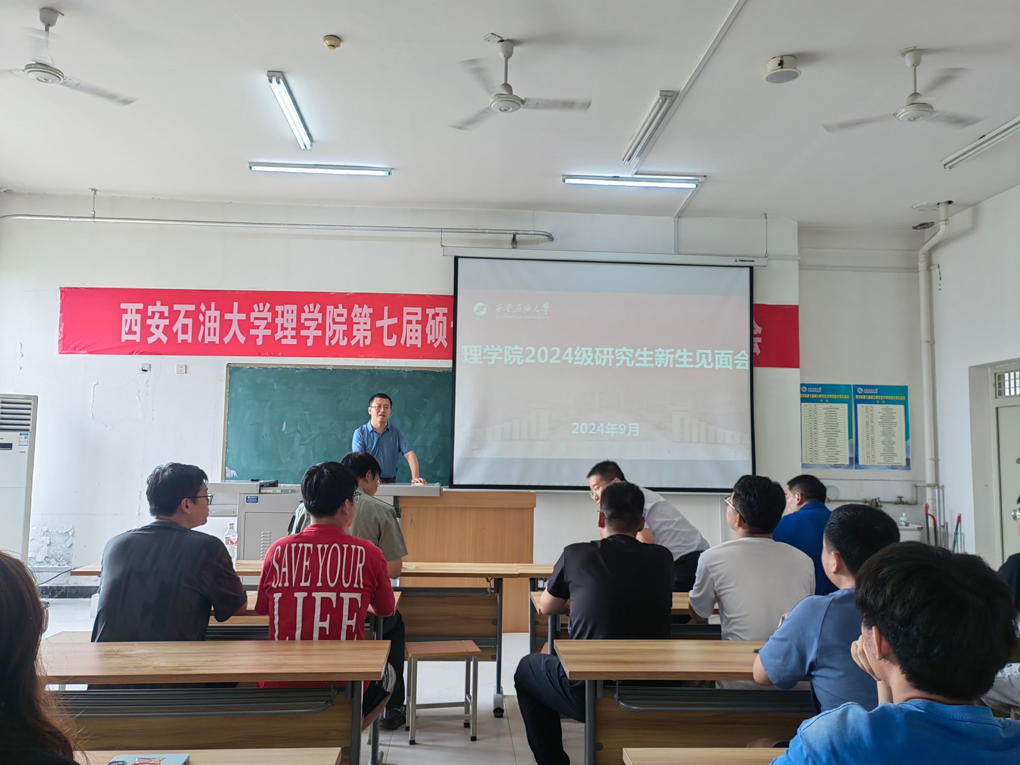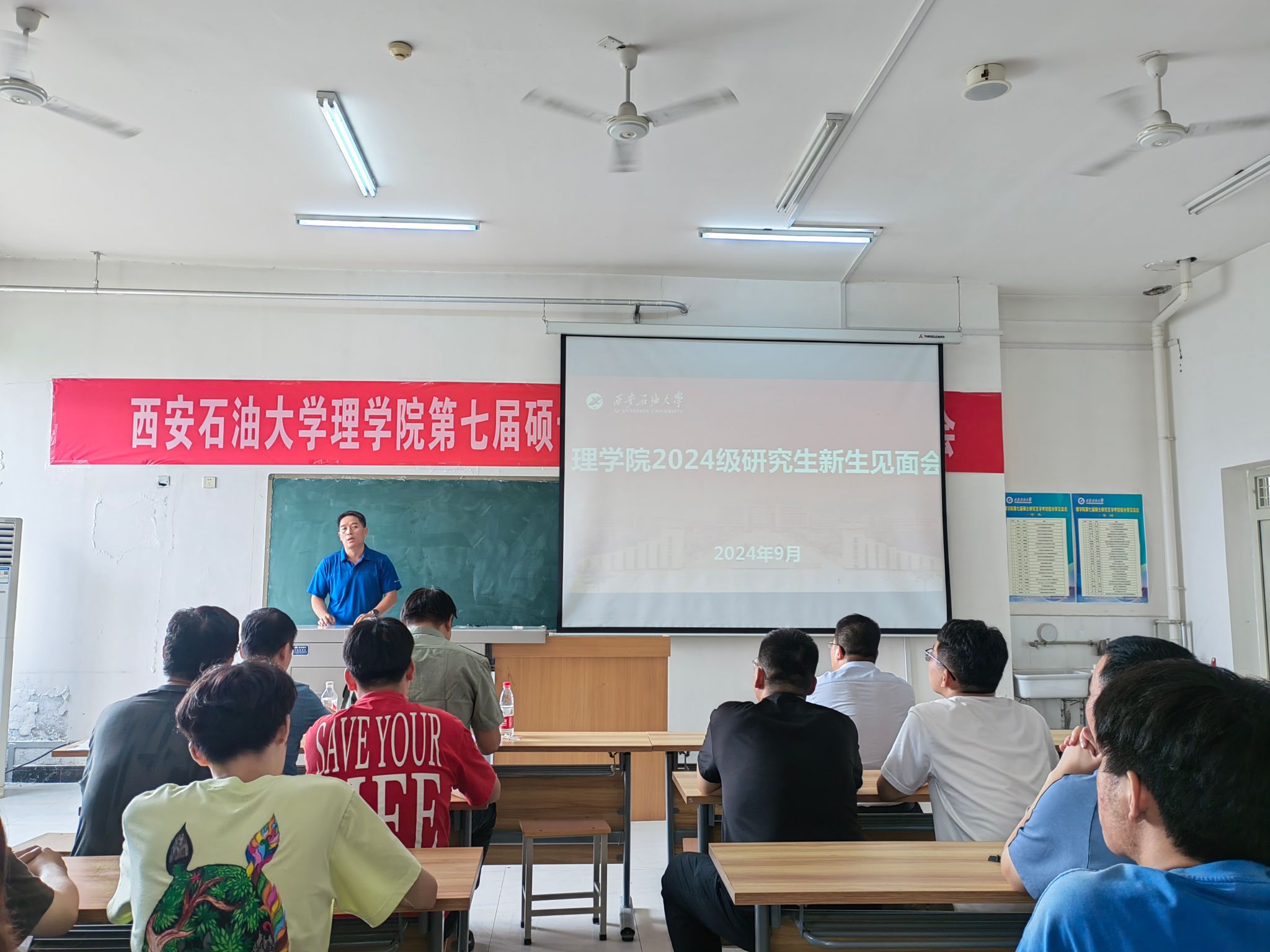 9月2日下午,理学院在鄠邑校区志远楼502室召开了2024级硕士研究生见面会。学院党委书记席利哲、党委副书记杨富民、副院长折延宏、应用物理系主任丁继军、研究生辅导员马小梅及全体2024级硕士研究生参加了本次大会。会议由副院长折延宏主持。