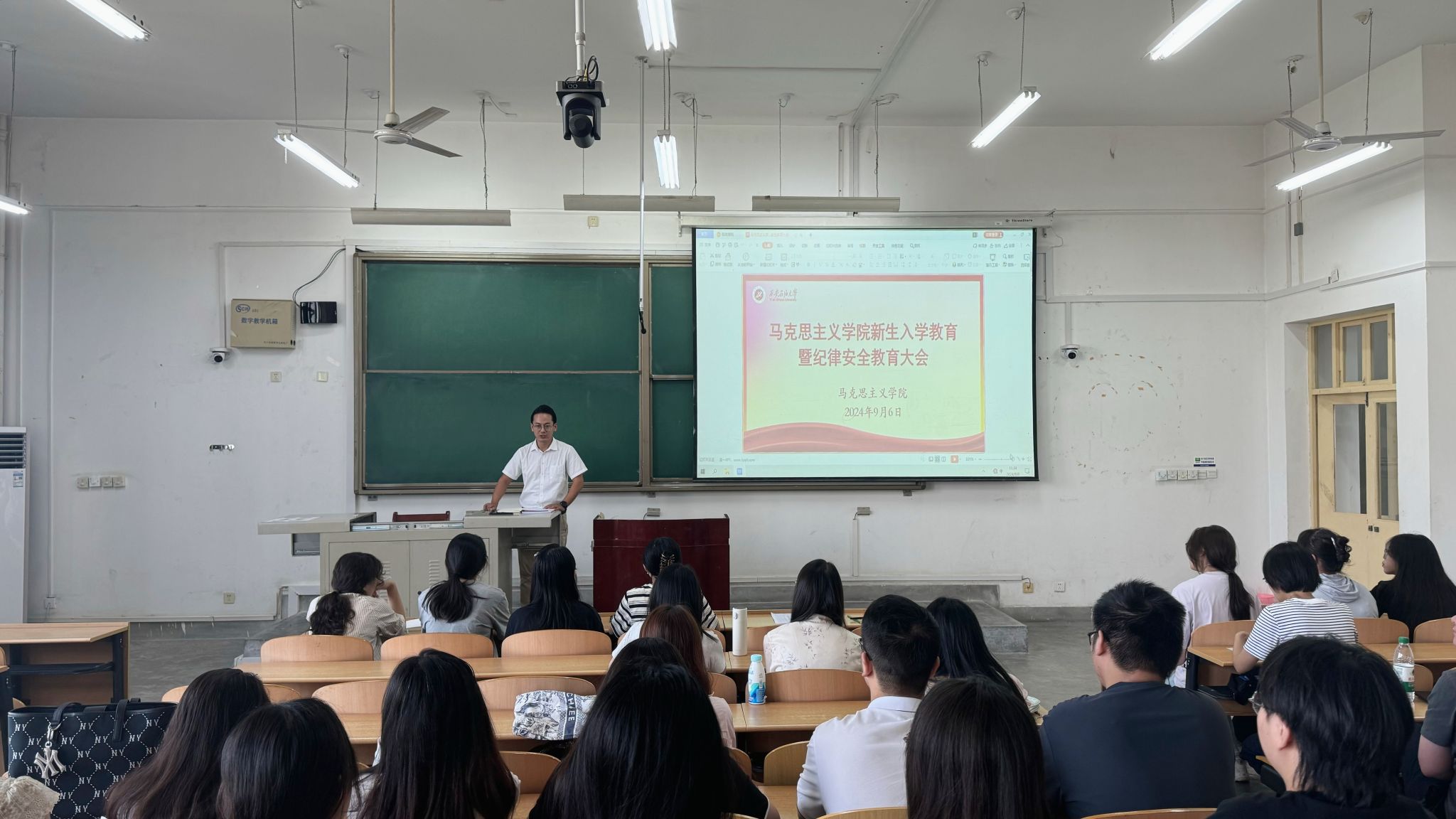 9月6日上午,马克思主义学2024级新生入学教育暨纪律安全教育大会在鄠邑校区博思楼B201教室召开,马克思主义学院党总支副书记袁通路,辅导员康伟,全体2024级新生参加会议,会议由康伟主持。