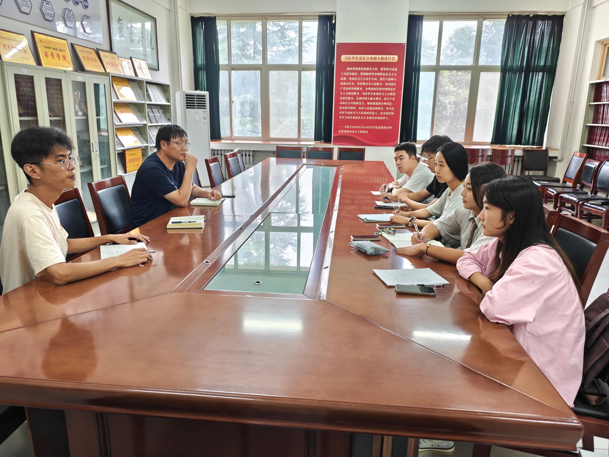 为了统一思想、明确目标、强化责任担当,确保新学期团学工作的顺利开展,9月4日,理学院团委在鄠邑校区志远楼111室召开新学期第一次团委学生会干部会议。学院党委副书记杨富民、团委书记庞波、学生会指导老师李猛、学院团委学生会主席团成员参加了会议,会议由庞波主持。
