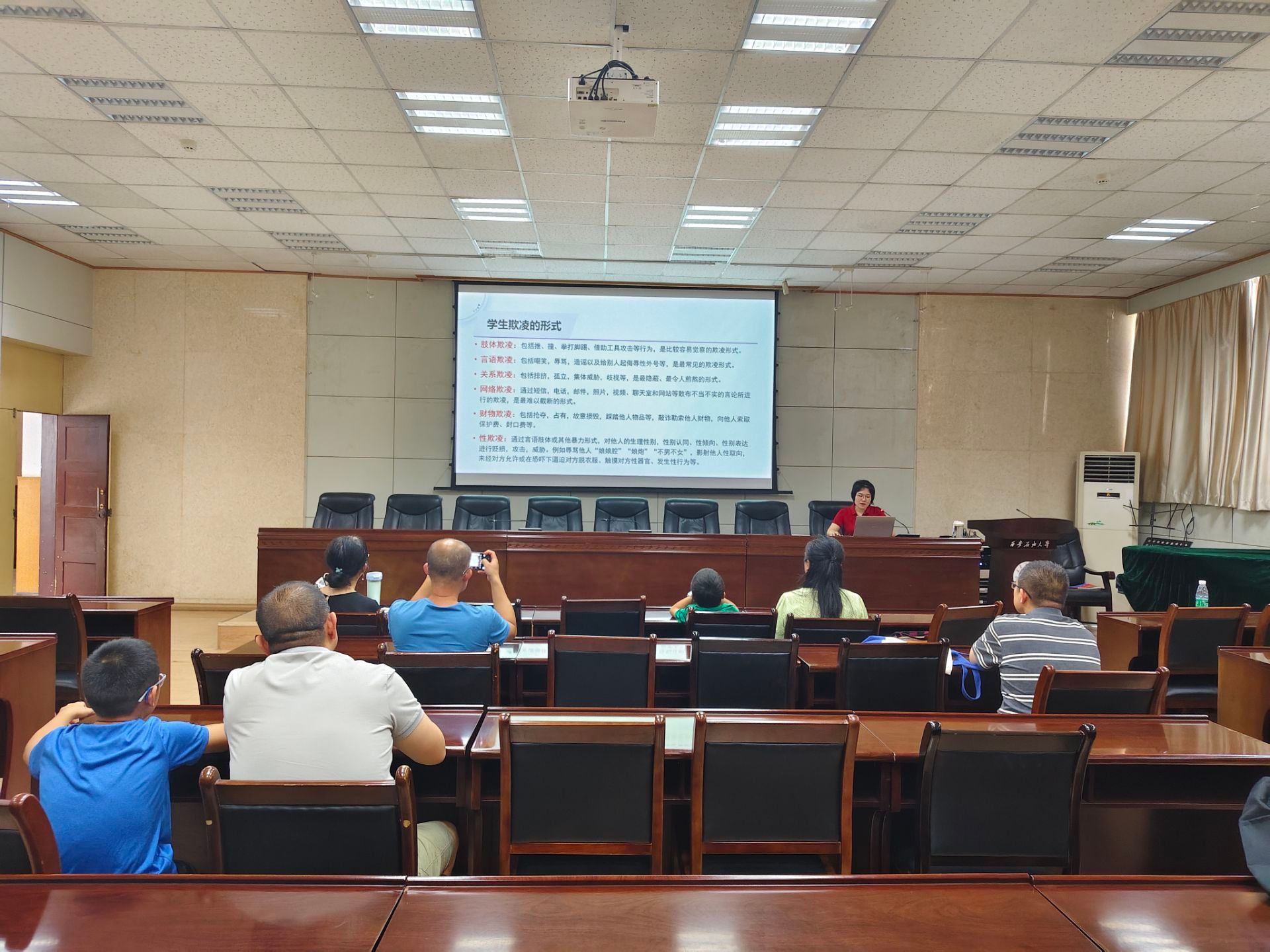 惠笑吟老师根据自己参与国家智慧教育平台暑期研修培训的学习内容,基于内蒙古自治区教研室刘春建团队的研究成果,进行了本次讲座。惠老师从学生欺凌的概念与形式,学生欺凌的原因、识别与危害,学校和班级层面可以如何干预学生欺凌,家长和学生如何应对欺凌等5个方面进行了讲座,让参与者了解到除了极端的欺凌悲剧外,更常见的是隐性欺凌现象,比如言语欺凌、关系欺凌等,让家长学习观察孩子被欺凌后可能的行为、情绪线索,以更切实地帮助子女,同时,还教会孩子们自我保护和求助,避免伤害,最后提出每个人要响应(文件)号召,家、校、社会共同营造美好社会,保障青少年健康成长。惠老师的讲座包含生动的案例和具体的做法,给在场的教职工留下了深刻印象。讲座结束后,一些家长还留下来与惠老师认真交流。