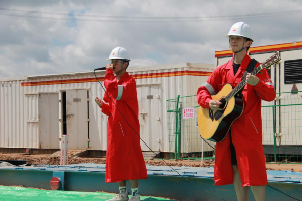 前期准备中,何云老师利用假期时间,悉心指导参演学生准备与排练,将铁人精神与实践教学相结合,精心准备了一系列经典曲目。8月26日于50072钻井队,常超凡演唱的《石油人的歌》中拉开演出序幕,迅速调动起了石油工人们的热情,赢得阵阵掌声;由彭月怀演唱的民谣《春风十里》让一线石油工人疲惫的身体在这宜人温馨的歌声中能得到一丝放松;民歌《小白杨》唱出了一线石油工人的情怀;吉他弹唱《无名的人》则是对这些默默无闻、坚守岗位的石油人鲜明的表达。
