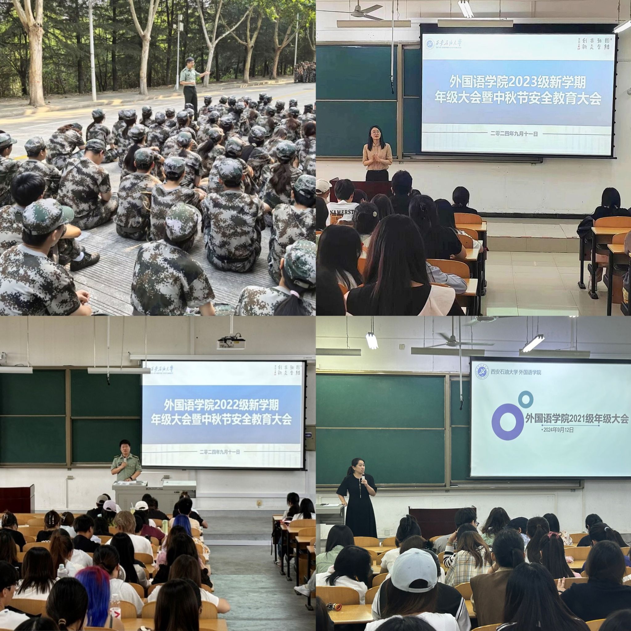 为贯彻落实学校各项工作要求,做好新学期各项学生教育管理服务工作,提高学生安全意识。近期,外国语学院各年级在鄠邑校区A234、B121、B112等分别召开新学期年级大会。