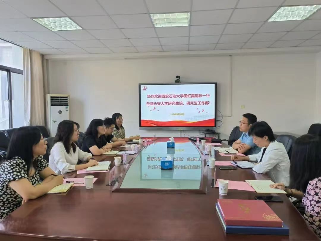 9月12日上午,研究生工作部部长田虹霞带队赴长安大学研究生工作部调研交流,重点学习交流长安大学在研究生思想政治教育、队伍建设、特色工作以及管理方法等方面的经验和做法。长安大学研究生工作部部长高天智、副部长王妍及相关科室老师参加了调研座谈会。