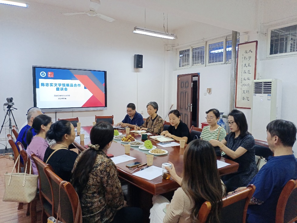 自bat365面向全社会征集陈忠实文学馆展品公告发布以来,受到了社会各界的关注。经过前期的沟通走访,9月18日下午,人文学院在雁塔校区华油能源楼813会议室组织召开了陈忠实文学馆展品合作座谈会。此次座谈会邀请了陕西文学收藏界的藏友王扣劳、王贵强,剪纸艺术家王海英、王强,画家贺正法等人。人文学院党委书记余小勇、院长方亭、教授王新建、教授柯卓英及陈忠实文学馆筹备组的部分老师参加了座谈,宣传部副部长高黎也应邀出席。