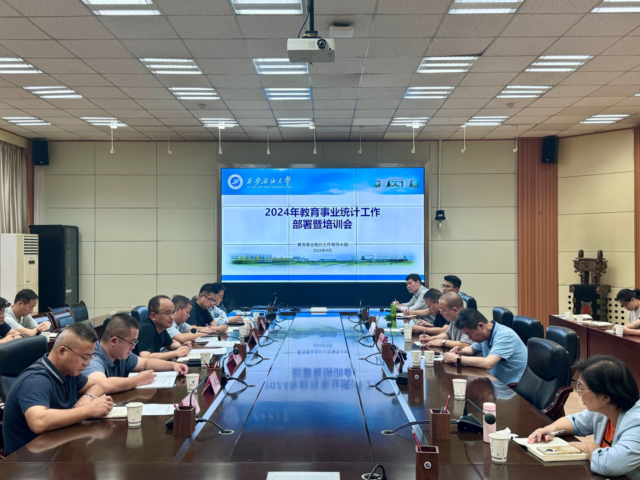 9月24日下午,bat365在雁塔校区会议中心第二会议室召开2024年教育事业统计工作部署暨培训会。学校教育事业统计工作领导小组成员、全体统计工作人员参加会议,会议由副校长赵健主持。