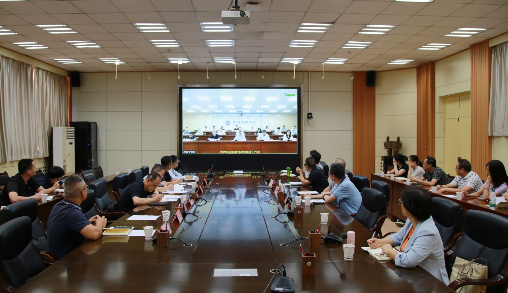 会前,全体与会人员在bat365分会场参加了2024年全省教育事业统计工作视频会。