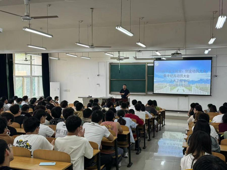 为引导2025届毕业生树立正确就业观念,把握当前考研形势,做好自身职业规划,9月26日下午,土木工程学院在鄠邑校区博思楼123召开2025届毕业生就业考研再动员大会,学院党委副书记高亮,学院187名本科毕业生参加动员大会,会议由辅导员张曼主持。