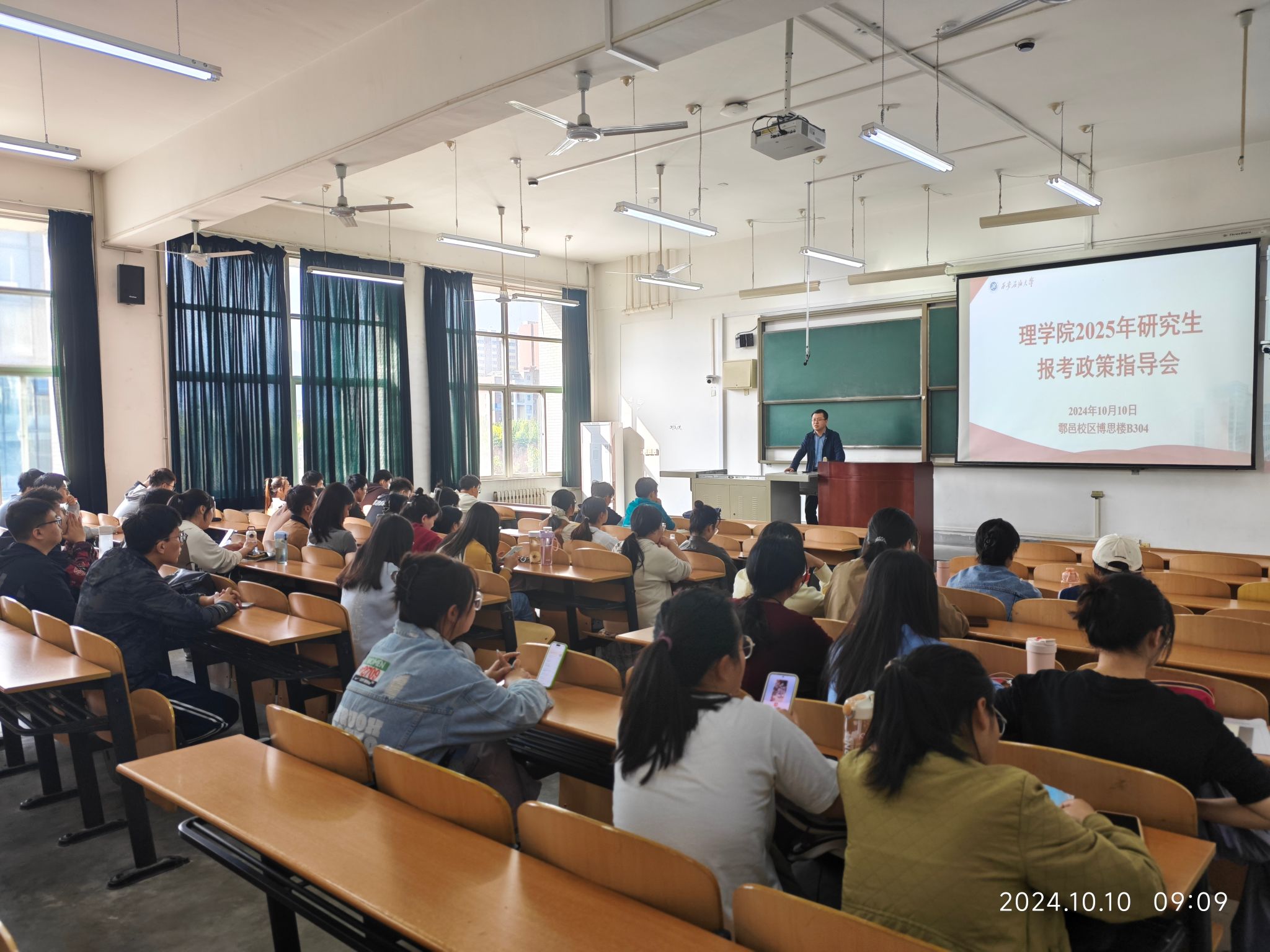 在2025届考研预报名启动之际,为帮助同学们明确报考院校和专业,调动考研积极性,增强备考信心,10月10日上午,理学院在鄠邑校区博思楼304室举办了2025年硕士研究生报考指导暨考研工作推进会。理学院党委副书记杨富民、副院长折延宏参加了会议。会议由学生管理办公室副主任庞波主持。