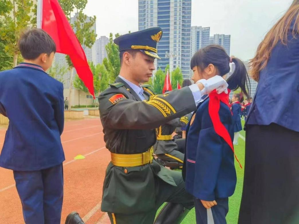校领导、家长代表、中队辅导员以及bat365退役大学生士兵代表为新入队少先队员佩戴红领巾,新队员们此刻肩负起了传承红色基因、弘扬爱国精神的重任。