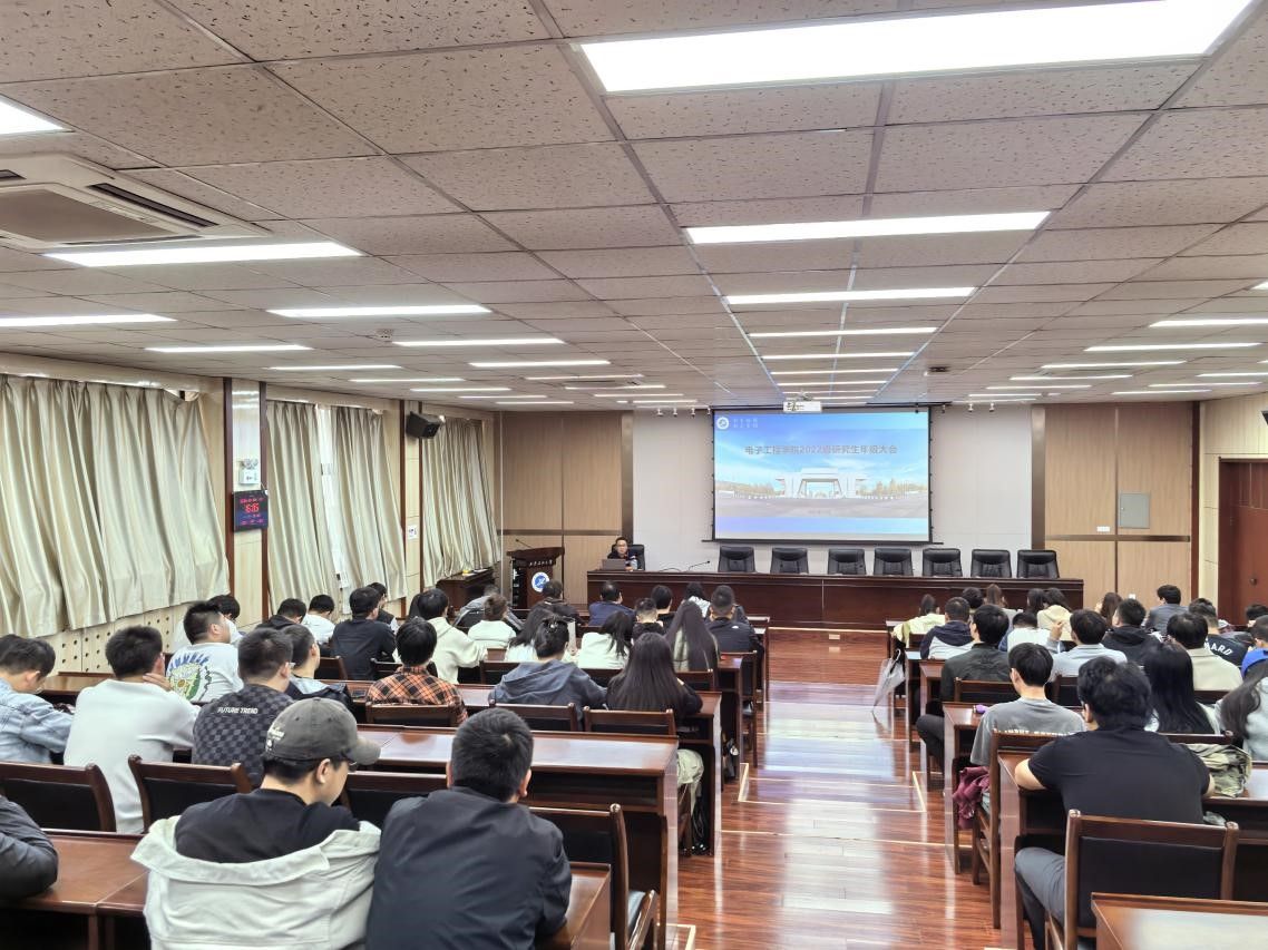 10月17日下午,电子工程学院在雁塔校区西阶第五会议室召开2022级研究生大会。学校就业创业指导中心干事马丁、副院长杨一、科研与研究生办公室主任赵骄杨、教学秘书张小妹、科研秘书杨琳参加会议。会议由研究生辅导员李君主持。