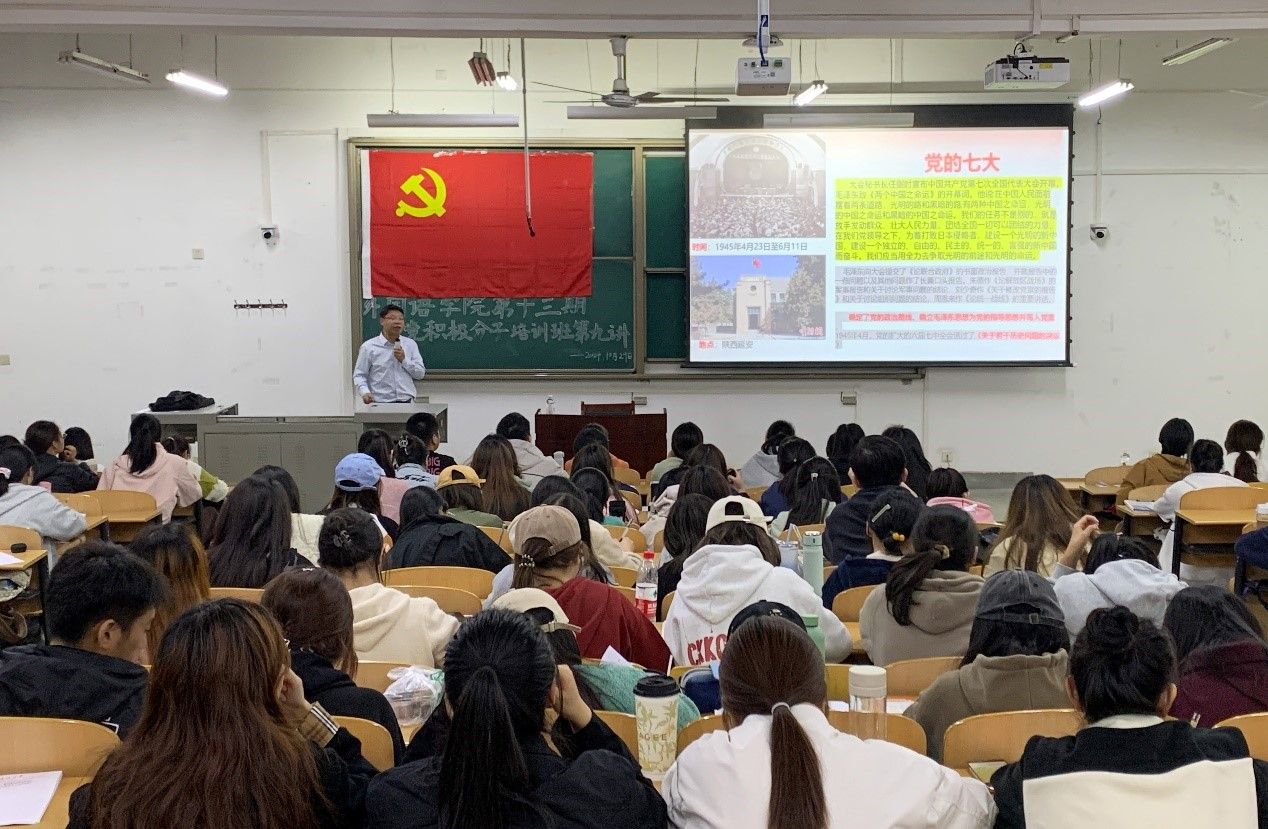 10月29日晚,外国语学院在鄠邑校区博思楼B221教室举办第十三期入党积极分子培训班第九讲。外国语学院党委副书记王业青应邀担任主讲,学院2024年全体入党积极分子参加培训。