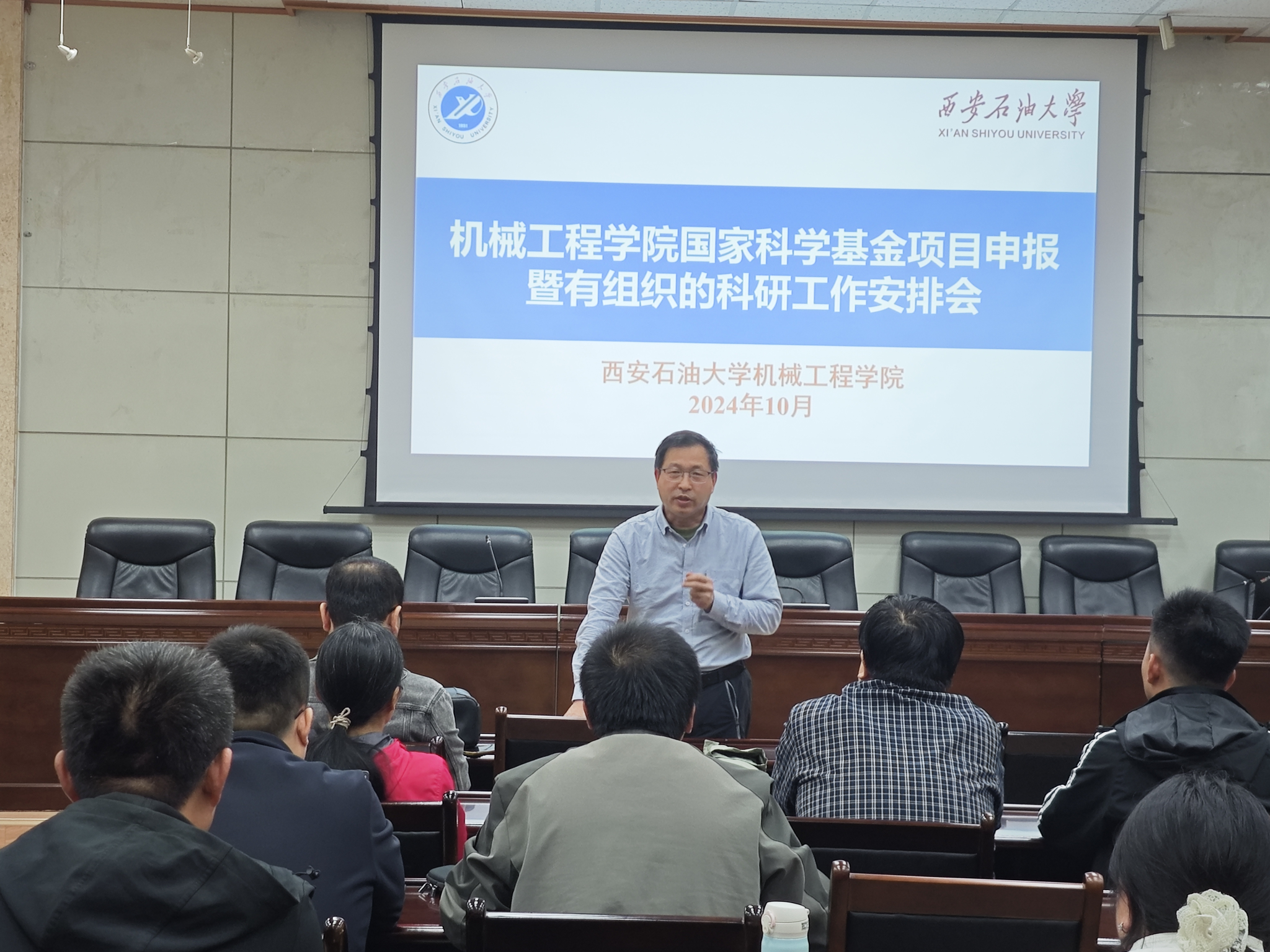 2024年10月30日下午,机械工程学院在雁塔校区第三会议室组织召开国家自然科学基金项目申报暨有组织的科研工作安排会。学校科研处副处长焦龙应邀到会指导,学院党委书记蔡建文、副院长崔璐及全体专业教师参会。会议由崔璐主持。