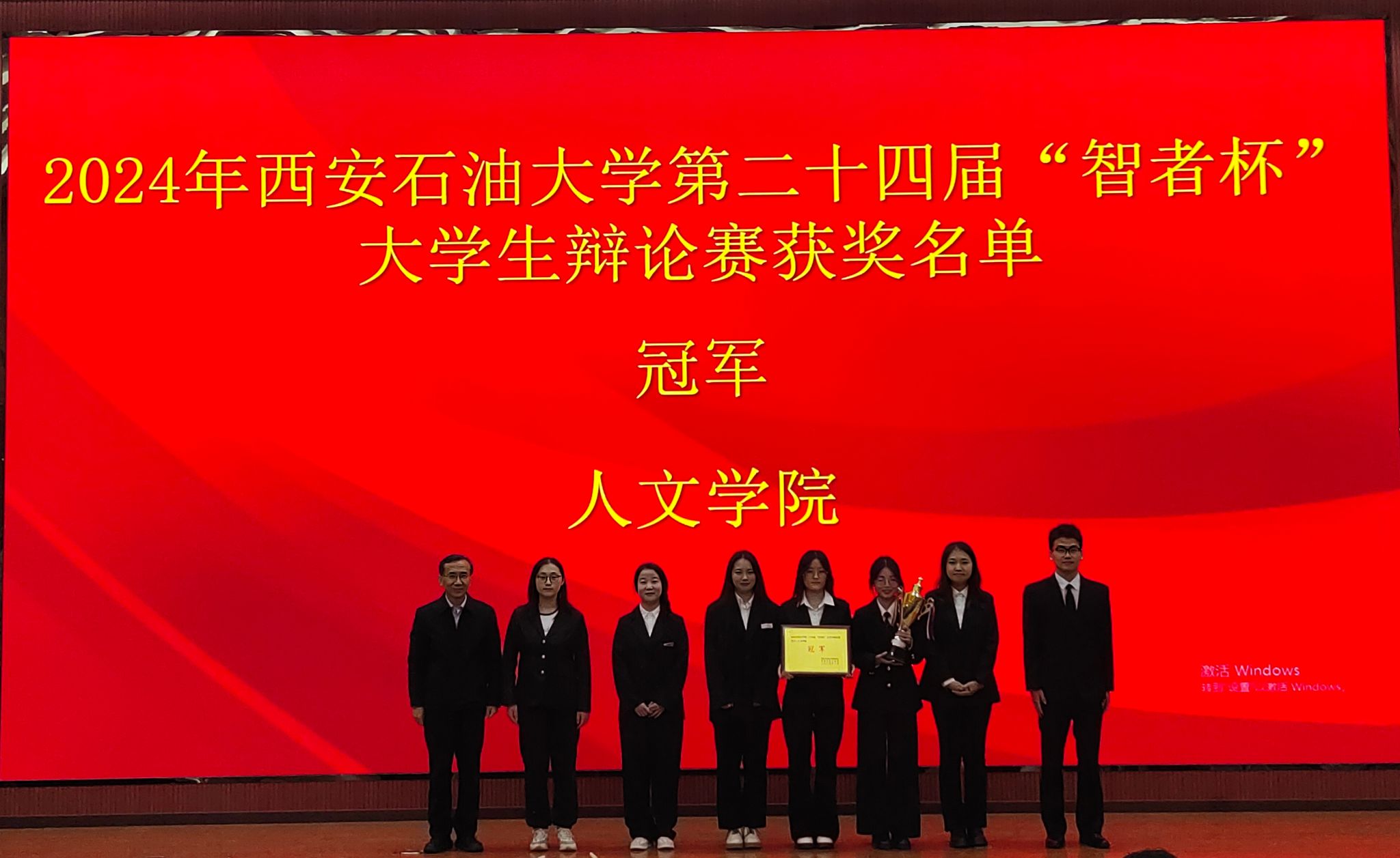 2024年10月31日,bat365中文官方网站第二十四届“智者杯”大学生辩论赛在鄠邑校区弘石报告厅落下帷幕,我院代表队作为反方队伍,就“铁人精神重在开拓创新”与正方代表队电子工程学院的“铁人精神重在艰苦奋斗”展开论述和辩论,经过激烈的角逐,人文学院代表队再次斩获冠军,成功卫冕!
