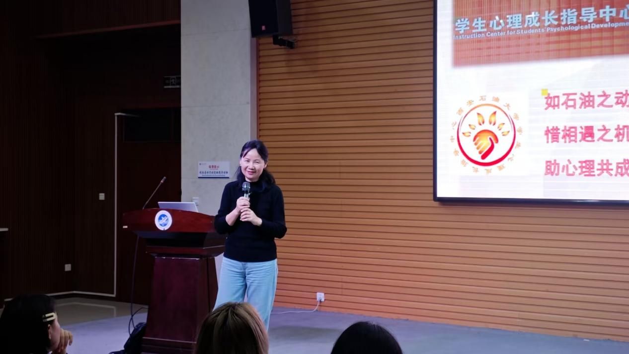 培训活动以“握手”、“言欢”热身开场,活跃了现场培训气氛,大家进入了比较轻松愉悦的状态。随后,肖琼老师介绍了“油缘”心理的“如石油之动力、惜相遇之机缘、助心理共成长”的文化理念,学生心理成长指导中心的场地、设备、人员及咨询预约方等。