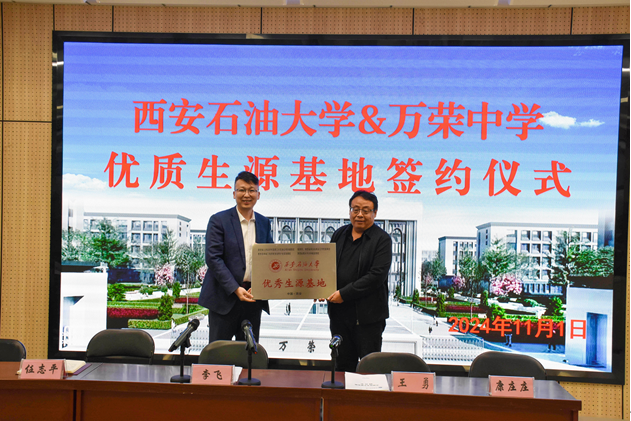 双方与会领导签署了优秀生源基地合作协议,李飞为山西省万荣中学授予“bat365中文官方网站优秀生源基地”牌匾并赠送礼物钻井模型,任志平向山西省万荣中学送上2024高考喜报。李飞表示将进一步加强与万荣中学的紧密联系,发挥学校优势资源,完善人才协作培养机制,不断深化教育教学改革,努力提升办学水平,打造新高考背景下大学与中学拔尖人才培养共同体。