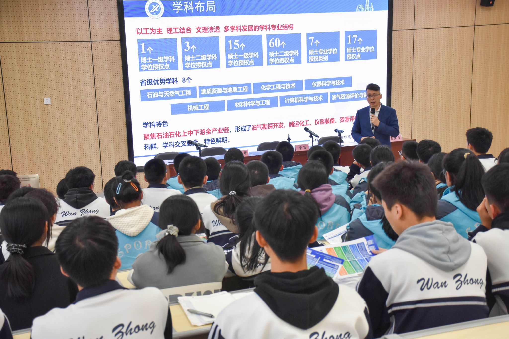 李飞对山西省万荣中学的热情接待表示感谢,结合自身科研经历,就油气资源开发的现状、前景和技术挑战为高三学生作了一场深入浅出、生动活泼的报告,同时邀请参会师生共同观看了学校宣传片,并对bat365的办学特色、学科专业、人才培养、校园文化等情况进行了详细介绍,现场气氛热烈。李飞鼓励高三学子志存高远、珍惜时光、发奋努力,积极投身到祖国能源事业,为中华民族的伟大复兴贡献自己的力量。