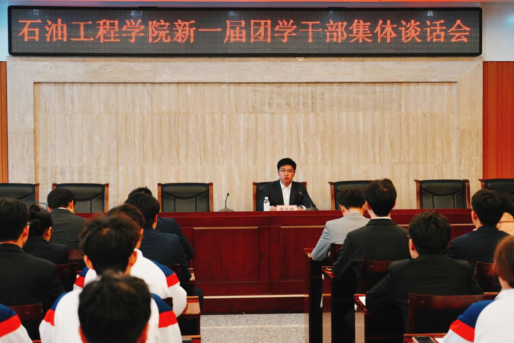 大会闭幕后,学院党委副书记张浩然在图书馆第一会议室与新一届团学骨干开展集体谈话。他指出,石油工程学院是学校最有历史底蕴、最有精神传承、最有价值贡献、最有学术追求的学院,石油工程学院团委学生会是学生工作中最有荣誉感、最有战斗力的不可或缺的力量。他强调,一要坚定信念、挺拔灵魂,努力成长为校园里最有政治担当的骨干。讲政治是学生干部最应该具备的重要品质。要注重在各类活动中突出政治性、思想性、引领性,教育引导广大青年爱国爱党、爱校荣校,坚定能源报国之志,团结引领广大团员和青年为中国式现代化挺膺担当。要努力成为最有领导力、最有组织力、最有动员力、最有号召力的学生集体,通过发挥作用让全院师生形成最大发展共识,全力推动学院学生工作各项任务高水平推进。二要精研理论、融会贯通,努力成为推动团学改革发展的先锋。要不断增强学生会组织的政治性、先进性、群众性,切实去除“机关化、行政化、贵族化、娱乐化”,着力加强自身建设,“不做学生官,争做青年友”。要扮演好学生与学院、学校之间的桥梁纽带,走进同学、贴近同学,重心下沉、深入基层,提升学生会组织的满意度、贡献度、认可度,让同学拥有获得感和幸福感。三要立足高远、洞察时势,努力成为打造一流工作体系的闯将。通过对比分析明确工作定位,围绕工作主线建立工作体系。新一届团委学生会主席团成员要尽快拿出工作纲领,清晰的回答如何全心全意为同学服务这个关键问题,清晰的回答如何引领石油工程学院青年学生实现全面发展的问题,清晰的描绘团学组织改革的蓝图、队伍的建设、日常的学习、品牌的打造、学风的提升、文化的建设等问题,要尽快在学校刊物公开发布,接受全体同学监督。四要敢于创新、继往开来,努力成为构建特色品牌活动的达人。学生干部要更有激情更有活力,构建特色品牌要坚持传承、敢于创新、精细打磨、扩大影响,举办活动要秉持“整体动员、广泛参与、展现集体”的原则,让更多同学走到聚光灯下展现自我。要通过“人在事上磨”着力塑造一支“召之即来、来之能战、战之能胜”的团学铁军。五要向内生长,逐光而行,努力成为好学力行自强不息的榜样。优秀的学生干部除了要在学生工作上展现能力水平,还要通过自身的成绩和成果带动实现引领作用。要培养自我觉察的能力、自我疏导的能力、独立思考和批判思维的能力。要树立标杆意识、头雁思维、领跑心态,追求卓越,永争第一。