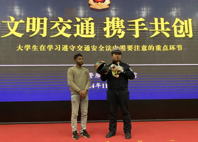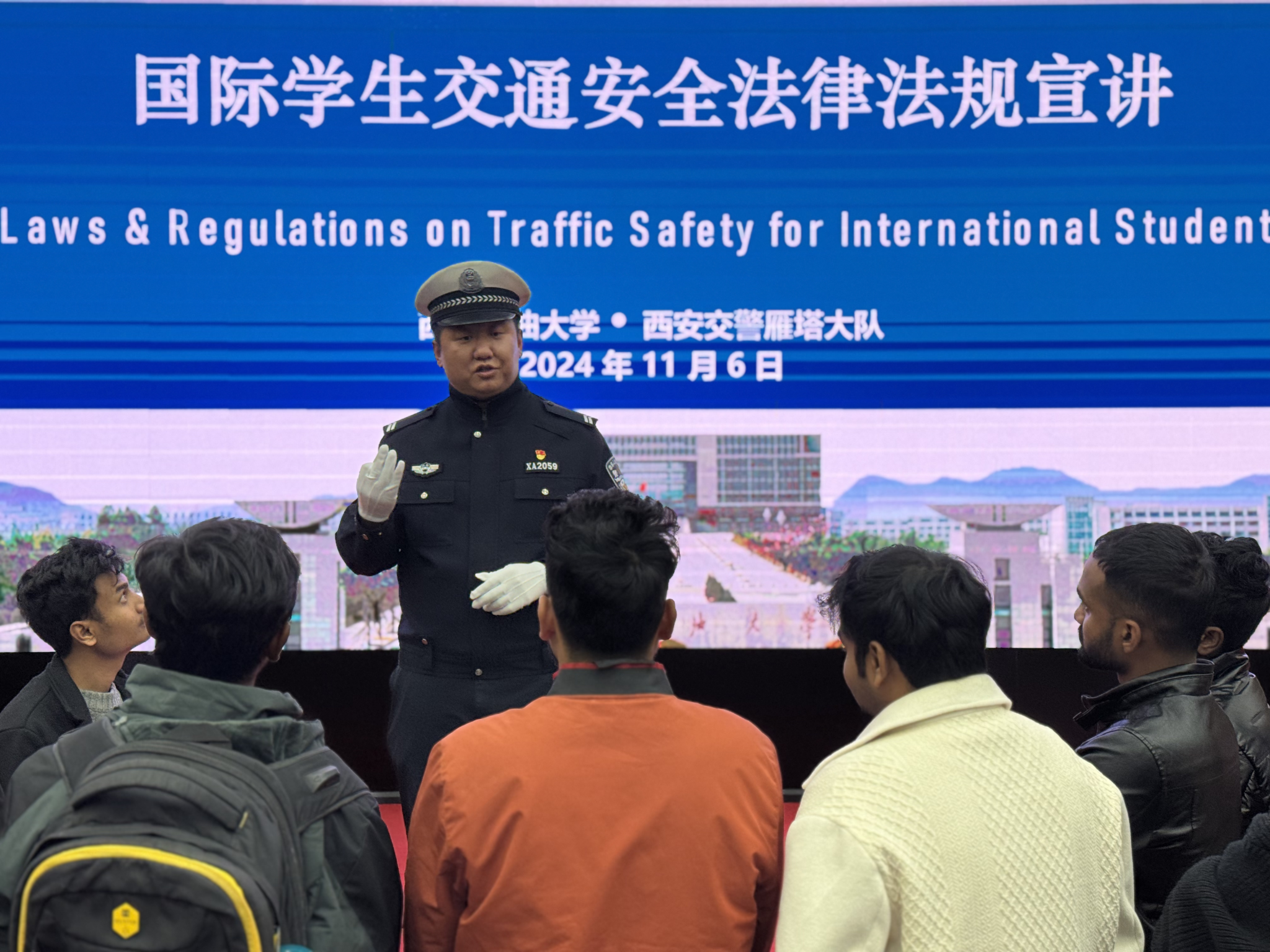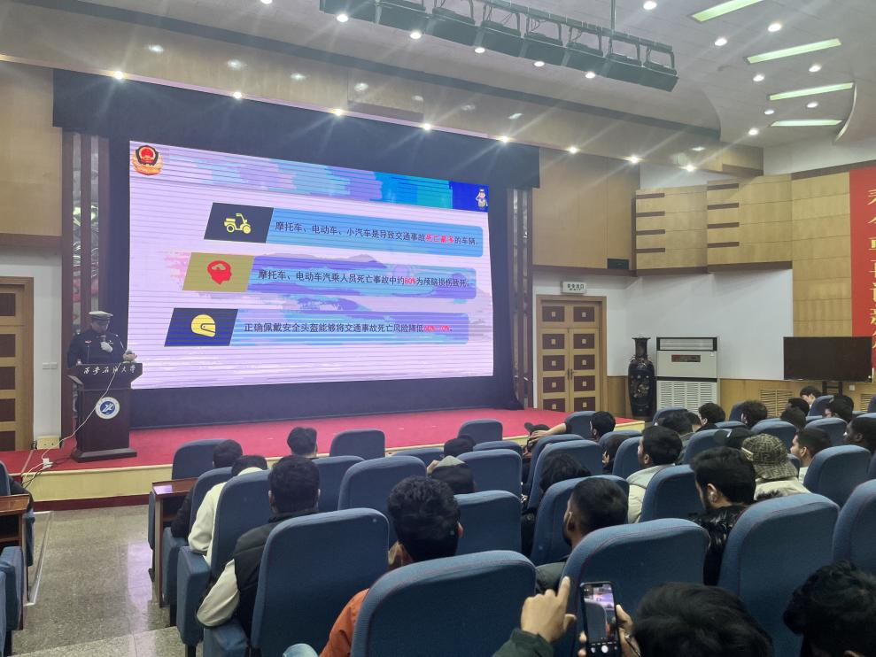 11月6日下午,国际教育学院邀请西安市公安局交警支队雁塔大队巨雷警官走进校园,为bat365国际学生进行道路交通安全法律法规教育宣讲。会议在雁塔校区会议中心学术报告厅举行,学院国际学生工作办公室全体辅导员及80余名在校国际学生参加。