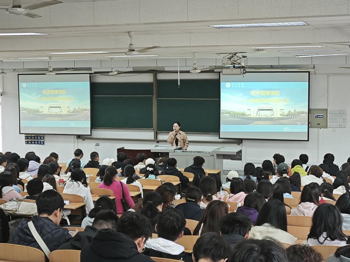 为进一步加强学风建设,严肃考试纪律,增强诚信考试意识,11月6日和11月13日,经济管理学院分批次召开2024级年级大会暨考风考纪教育大会。2024级全体本科生参加大会,会议由2024级辅导员张硕主持。