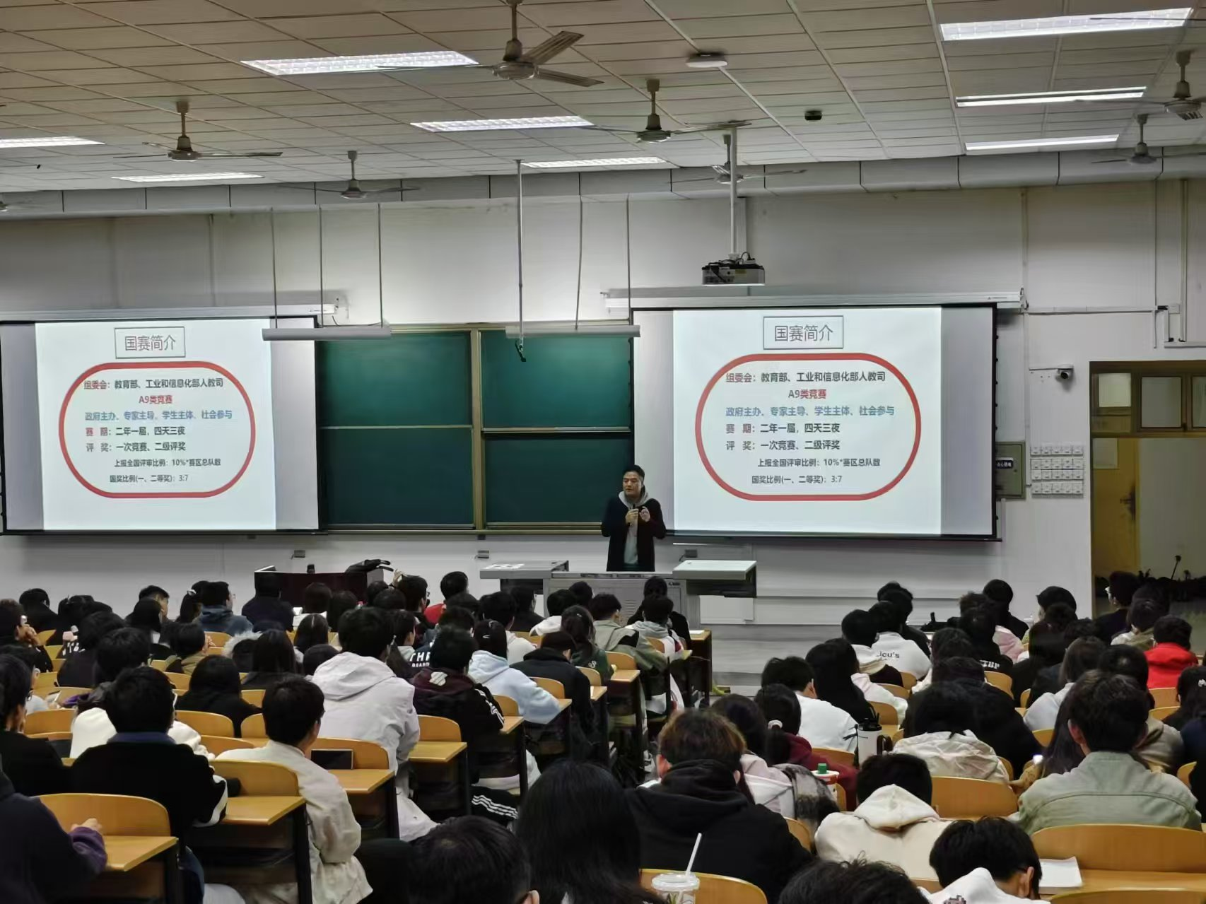 刘健全面介绍了该竞赛的背景、重要性和命题导向,详细解读了竞赛的时间安排、比赛形式、评审准则、作品提交规范、技术导向以及获奖比例,并从作品选题、设计实现、团队协作等方面为同学们提供了建议意见。