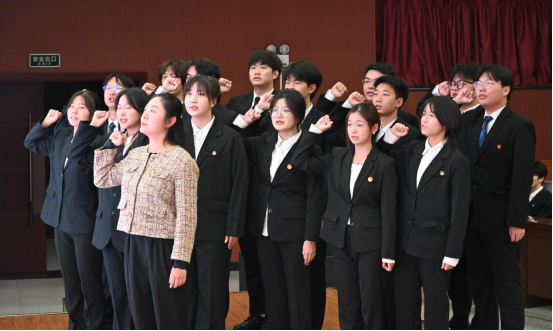 学院团委书记王璟带领新任团委委员、新一届学生委员会委员面向国旗庄严宣誓就职。新任委员代表刘丹阳作工作展望。