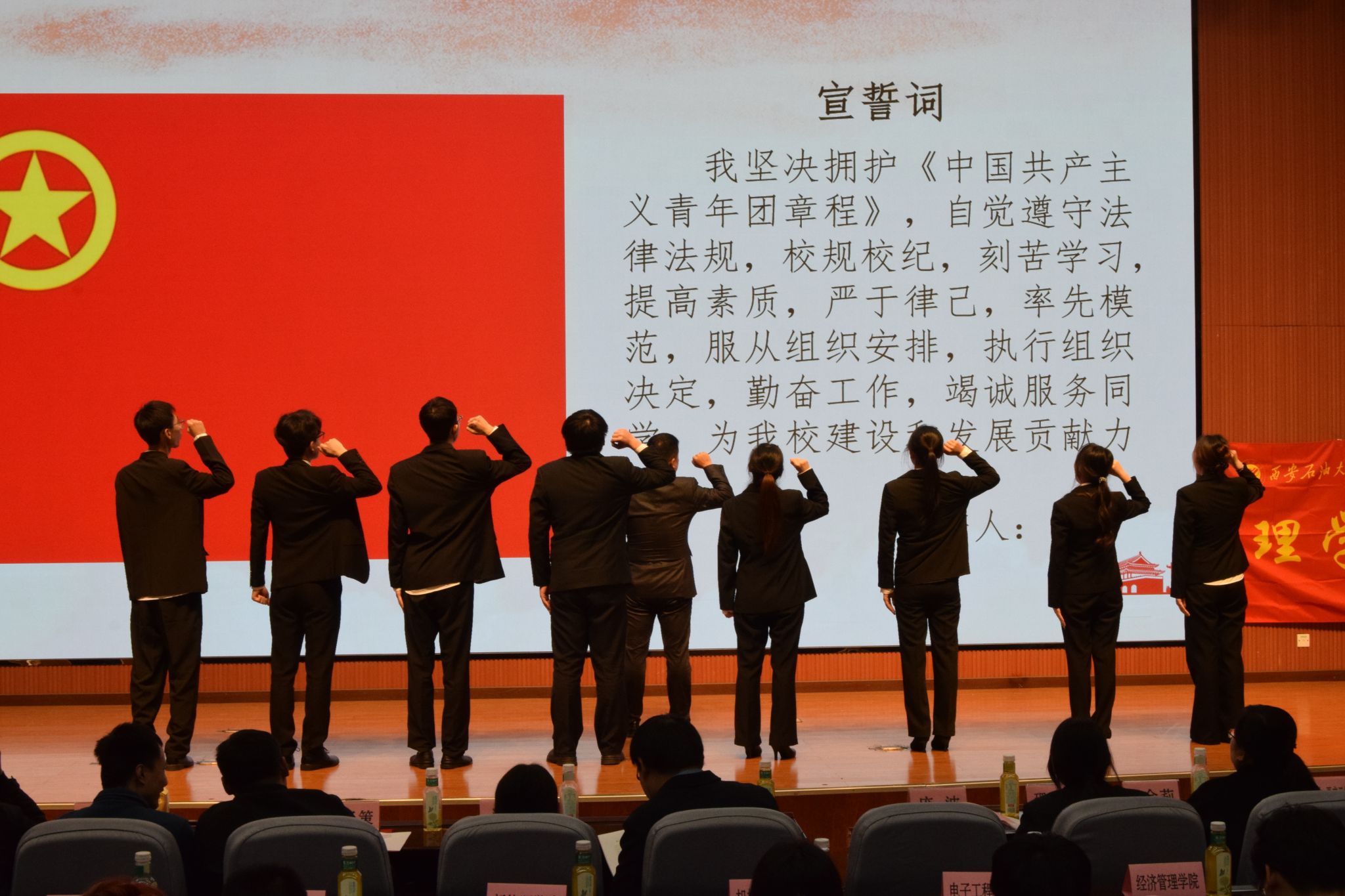 大会通过无记名投票,差额选举方式顺利选举产生了理学院新任团委委员、新一届学生委员会委员。理学院团委书记庞波带领新当选的委员面向国旗庄严宣誓就职。