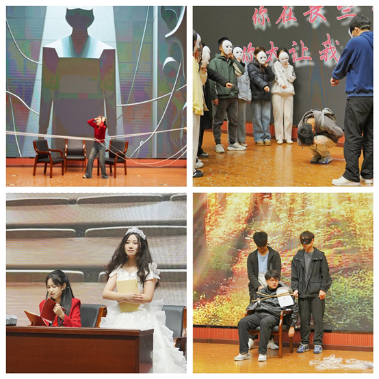 比赛共有十四支代表队参赛。十四场精彩纷呈的节目,以欢笑交织感动,细腻描绘了当代大学生心灵成长的轨迹,生动展现了他们青春年华的无限活力与魅力,在为观众带来视听盛宴的同时,也激发了深刻思考与诸多感悟。《话地为牢》,如同一把钥匙,打开了同学们心中话语的囚笼,让五彩斑斓的梦想与情感充盈心间。《孤独的微笑》则聚焦于退役大学生的内心世界,通过心灵的深度对话,引领观众步入一个充满爱与力量的温暖世界。《破茧》剧目,以铿锵有力的声音,鼓励学生勇敢发声,坚决反抗校园霸凌。《破缚展翼》则通过讲述小美突破自我、化茧成蝶的感人故事,激励大家在内心遭遇困扰时,能够勇敢地挣脱束缚,追求自由与成长。《重启的轨迹》以一位女孩在迷茫中冲破重重阻碍、点燃梦想之光的故事,激励大家明确目标,在追梦路上勇往直前,书写属于自己的辉煌篇章。《一条不通往罗马的路》则通过主人公坚定不移追求梦想的历程,引发了观众对自己人生理想与目标的深刻思考。《话心话》生动演绎了一位大学生如何摆脱他人看法的束缚,下定决心改变自我,最终打破囚笼、收获友谊的励志故事。《破茧新生,青春同行》则让我们见证了一位大学新生在迷茫中勇敢前行,克服重重困难,最终邂逅新伙伴、收获珍贵友谊的感人历程。《断章取“谊”》以独特的视角启示观众,“阶段性友谊”是人生的常态,每一次相遇都值得珍藏。《做手机的主人》则聚焦于手机使用的利弊,启发观众思考如何科学使用手机,让它成为生活的助手而非羁绊。《爱的背面》通过佳佳与父母及时沟通、化解矛盾、接纳爱的故事,鼓励大家在遇到问题时勇于沟通、相互理解。《平面镜》则通过一位大一新生的成长历程,深入浅出地阐释了“镜中我效应”,展现了在迷茫中探索、在困难中成长的力量。《龙傲九天》以深刻的哲理传达出面对现实中的自己才是成长开始的真谛。《你好,信箱》则以信件为载体,聚焦大学生学业压力、未来焦虑、前路迷茫等问题,鼓励大家倾诉心声、勇敢面对。