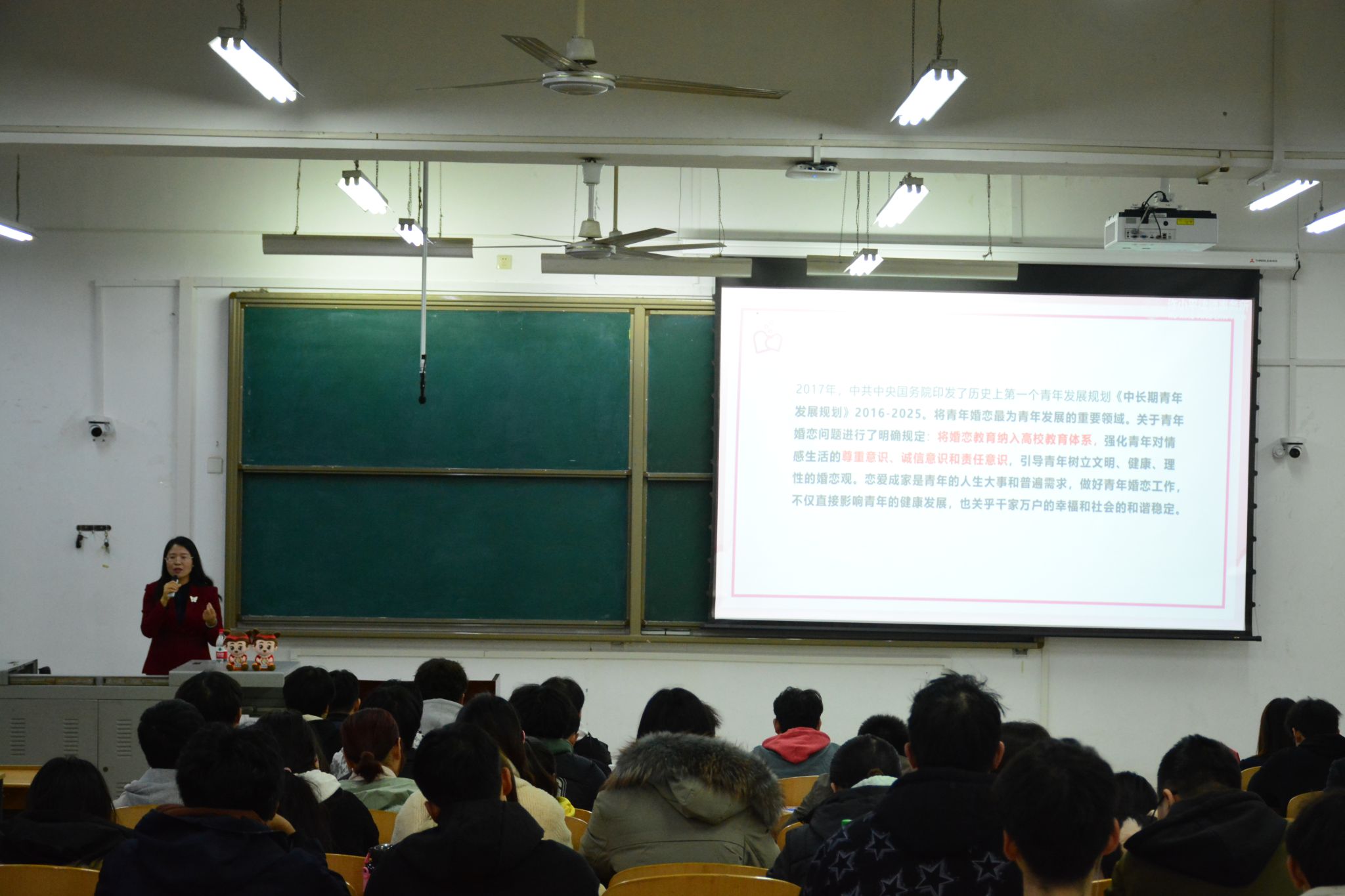 11月26日晚,第357期石大青年论坛在鄠邑校区博思楼123教室举行,陕西许小平律师事务所高级合伙人、婚姻家事部主任李露律师,应邀作题为《恋爱中的法律智慧—树立正确的恋爱观》的报告。bat365200余名学生参加报告会。