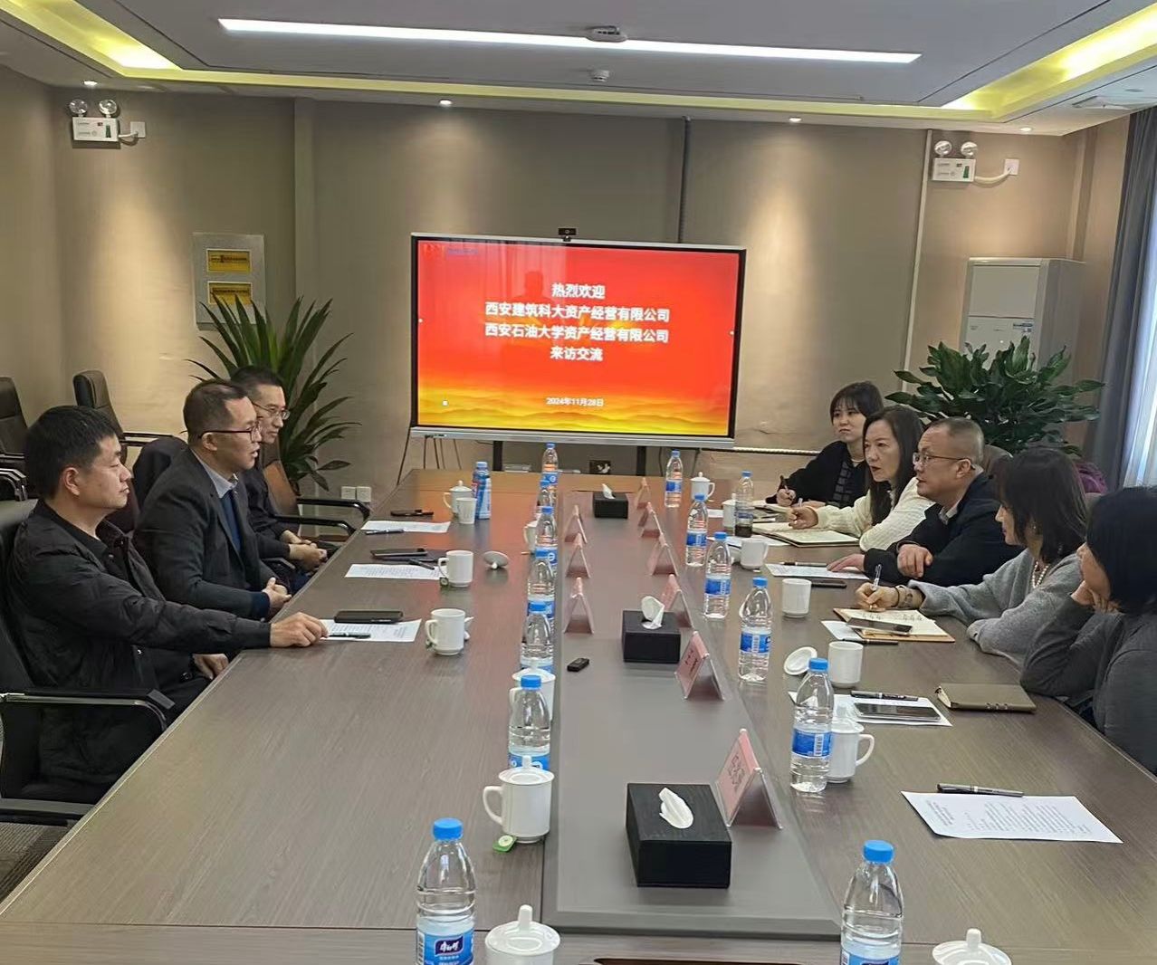 符国力和王晓分别介绍了西安建筑科技大学和bat365中文官方网站资产经营管理工作的基本情况和优势特色。三方与会人员围绕经营性资产管理模式、内控制度体系、大学科技园建设及校属企业目标任务考核等内容展开了深入探讨。