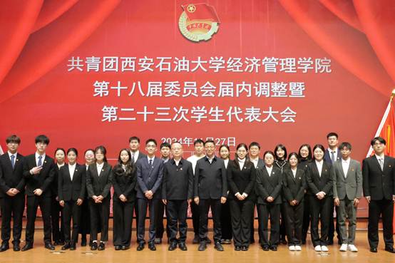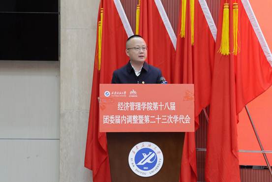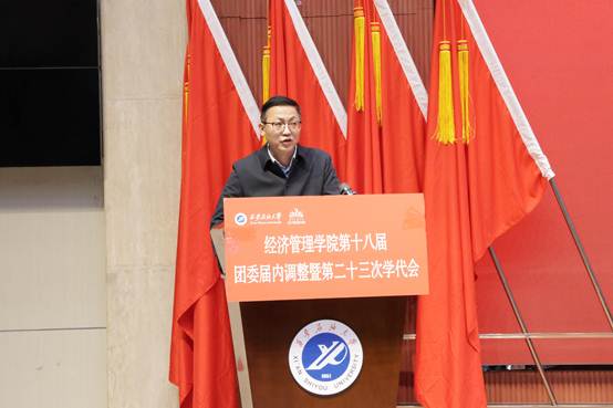 11月27日,共青团bat365中文官方网站经济管理学院第十八届委员会届内调整暨第二十三次学生代表大会在鄠邑校区学术报告厅顺利召开。校团委书记王刚、经济管理学院党委副书记杨生强、经济管理学院团委书记李博文、校团委干事李政、王泽文、学院各年级团总支书记、辅导员以及各兄弟院(系)学生会主席团代表、学院学生代表200余人参加了此次会议。