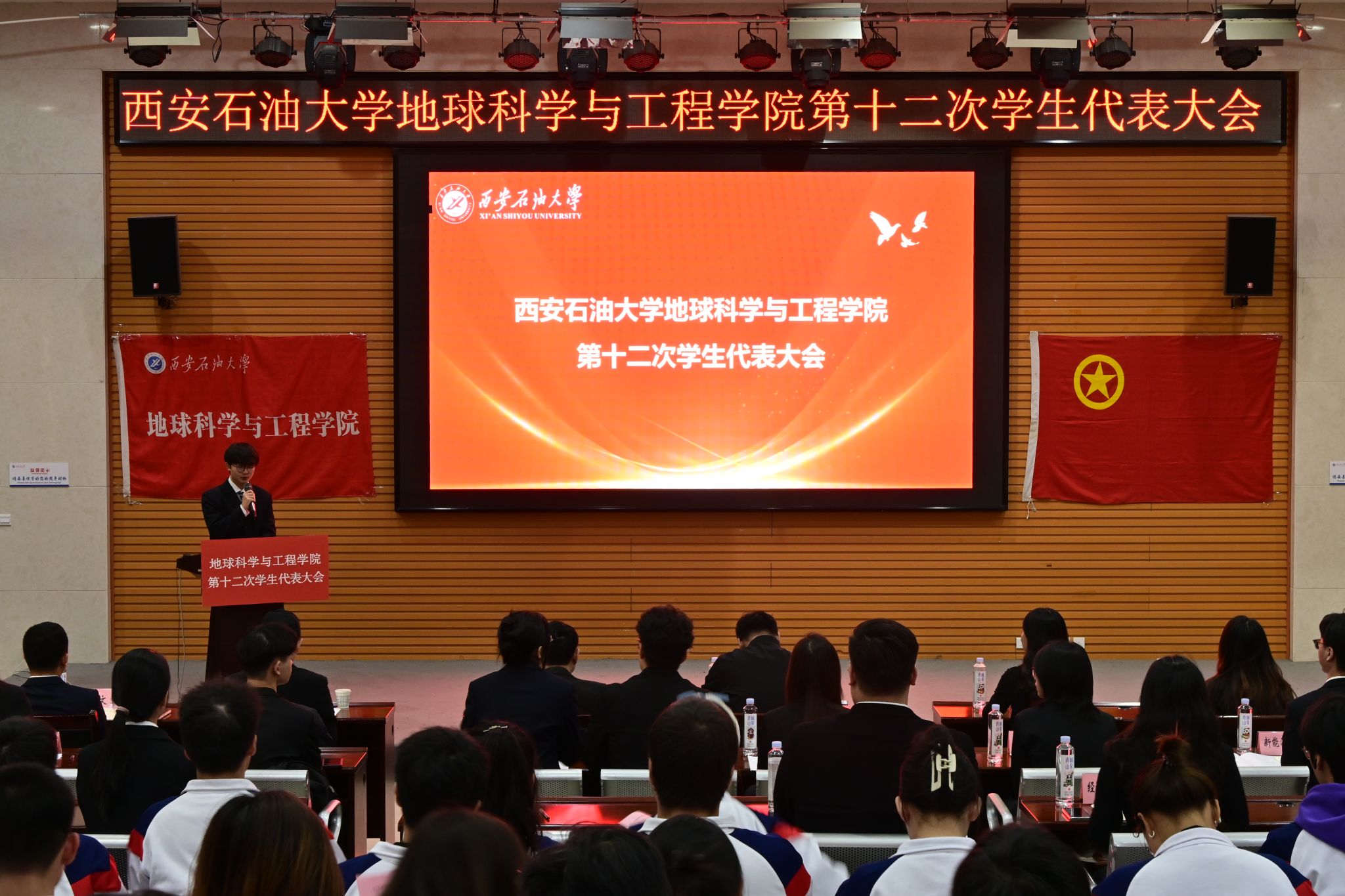 2024年11月27日下午,bat365中文官方网站地球科学与工程学院第十二次学生代表大会在鄠邑校区崇文楼118报告厅顺利召开。学院党委书记马行天、校团委副书记王军策、学院团委书记姜楠、各年级团总支书记及108名学生代表参加了此次会议。应邀出席此次会议的还有来自兄弟院系的团委、学生会代表们。