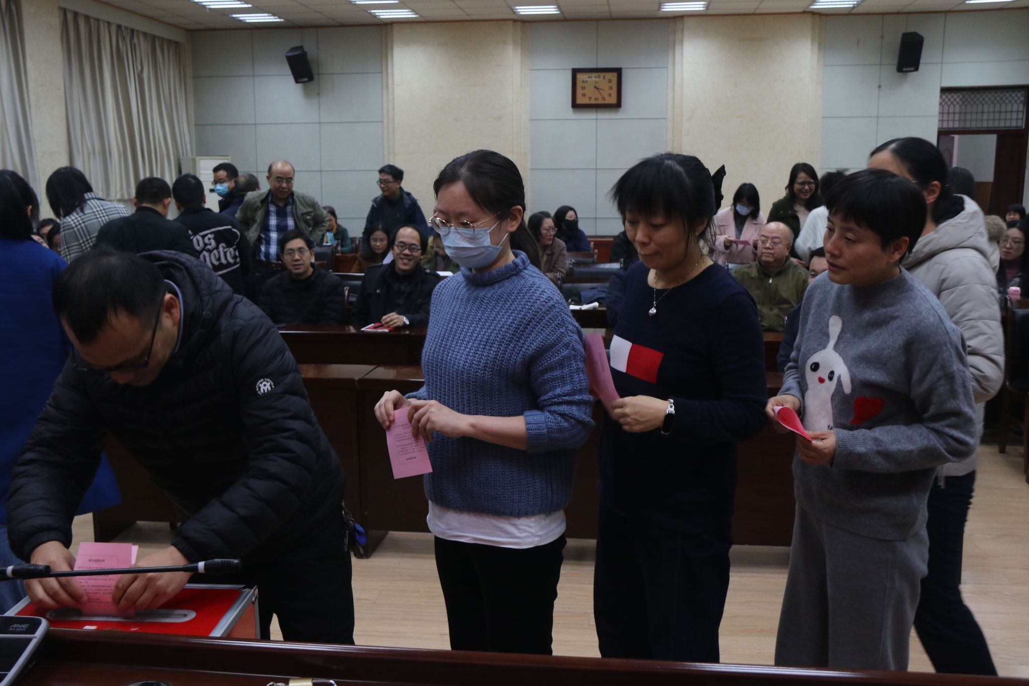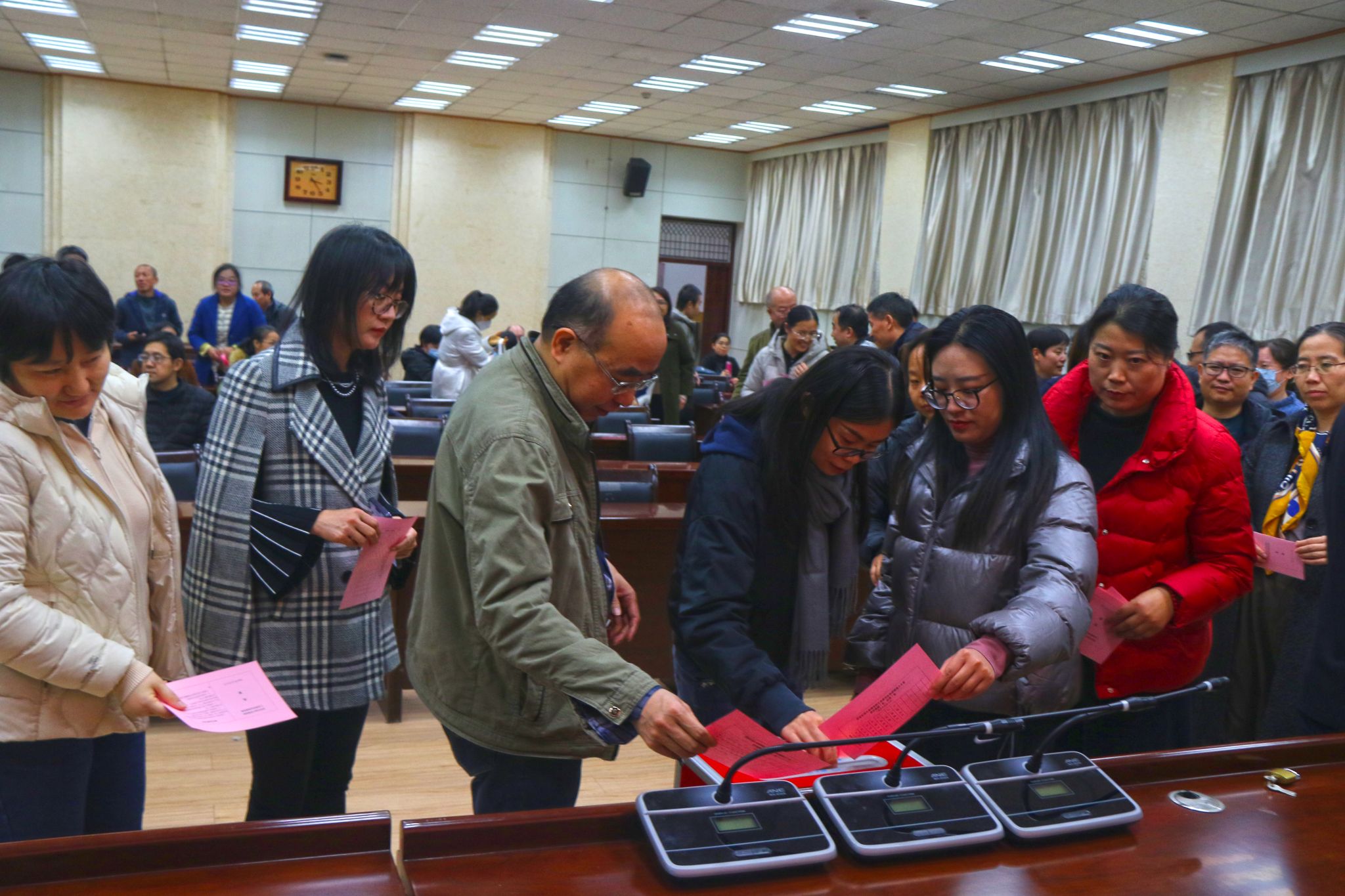 随后,大会表决通过了监票人、计票人名单,以无记名投票的方式进行选举。最终,刘孝艳、黄毓虎、赵子宇、白亮、贺晓丽、高楠、温俊青7名同志当选为理学院第九届部门工会委员会委员。会后,理学院第九届部门工会委员会召开第一次全体会议,选举刘孝艳为理学院工会主席,黄毓虎为理学院工会副主席,并对其他委员工作进行了分工。