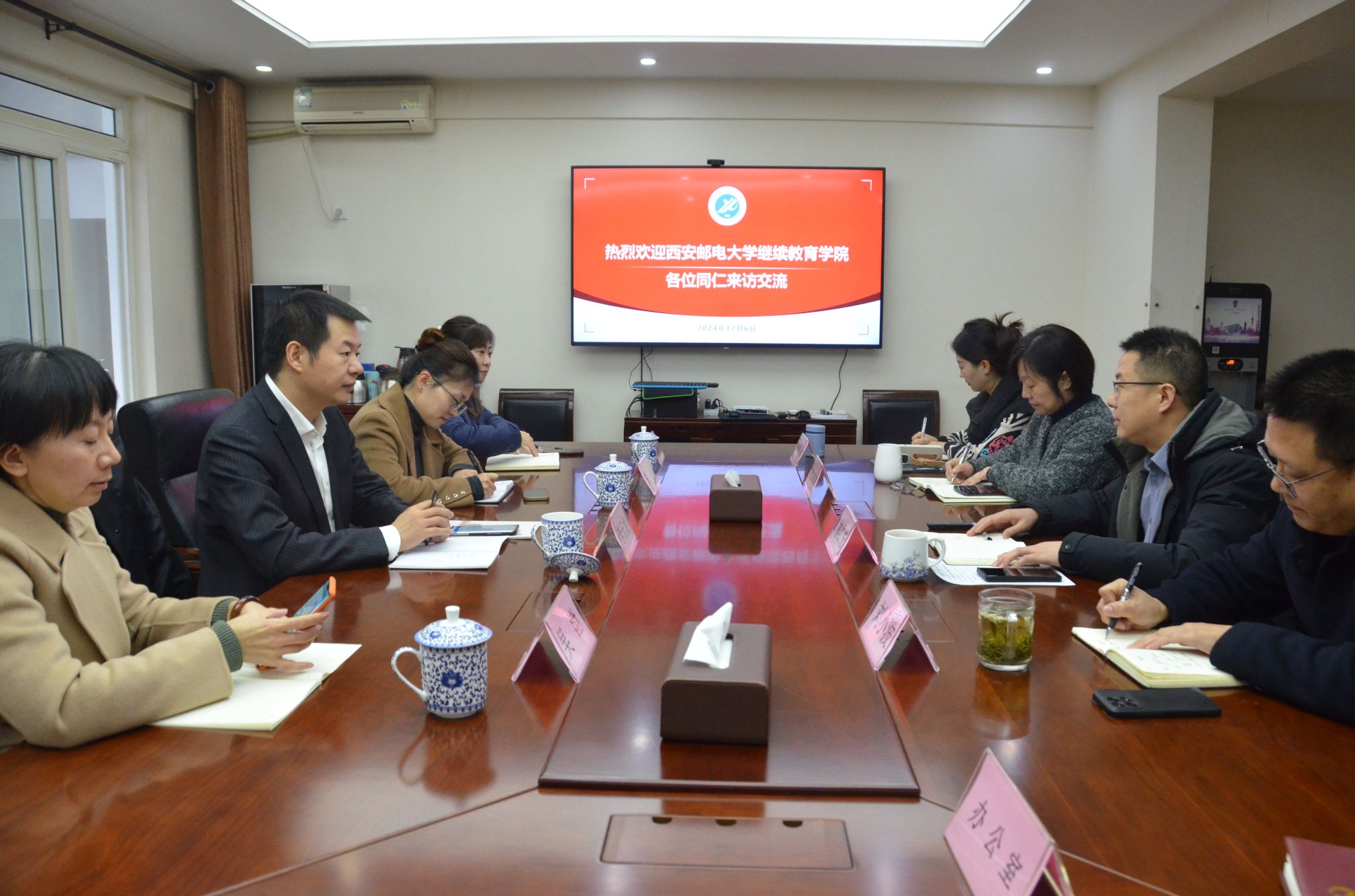 为加强校际间继续教育领域的交流与合作,促进共同发展,12月6日上午,西安邮电大学继续教育学院院长李天龙一行来院调研交流。院长林红先主持座谈会,副院长刘小波、办公室、培训办公室及招生办公室负责人参加座谈会。