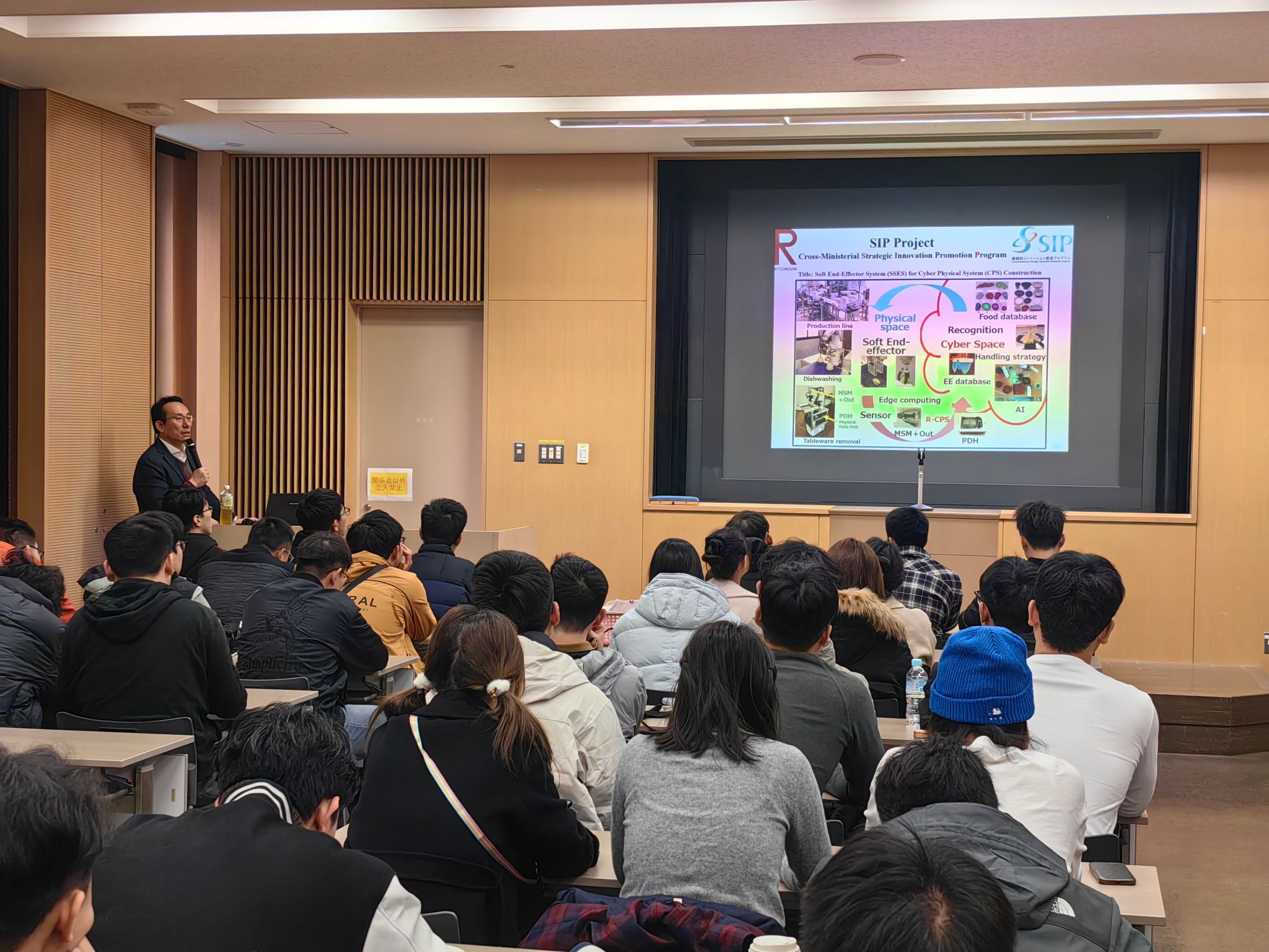京都大学联盟,由日本京都及周边地区的46所院校组成,其中包括私立大学、专科学校以及国立和公立大学,该联盟是日本大学合作组织的先行者,其规模为日本之最。在京都大学联盟基地,同学们参加了王忠奎教授题为“软体机器人技术应用”的专题讲座。王忠奎教授介绍了软体机器人在日本的发展趋势,以及软体机器人末端执行器在日本食品行业中的应用,讲述软体机器人的应用前景及未来的发展方向。在京都大学联盟,同学们与京都大学Cribug博士和陈晨博士作了深入交流。两位博士就日本留学、中日文化交流、中日大学生就业等话题,与同学们开展了深入的沟通交流,同学们踊跃提问,两位博士知无不言,现场气氛热烈。