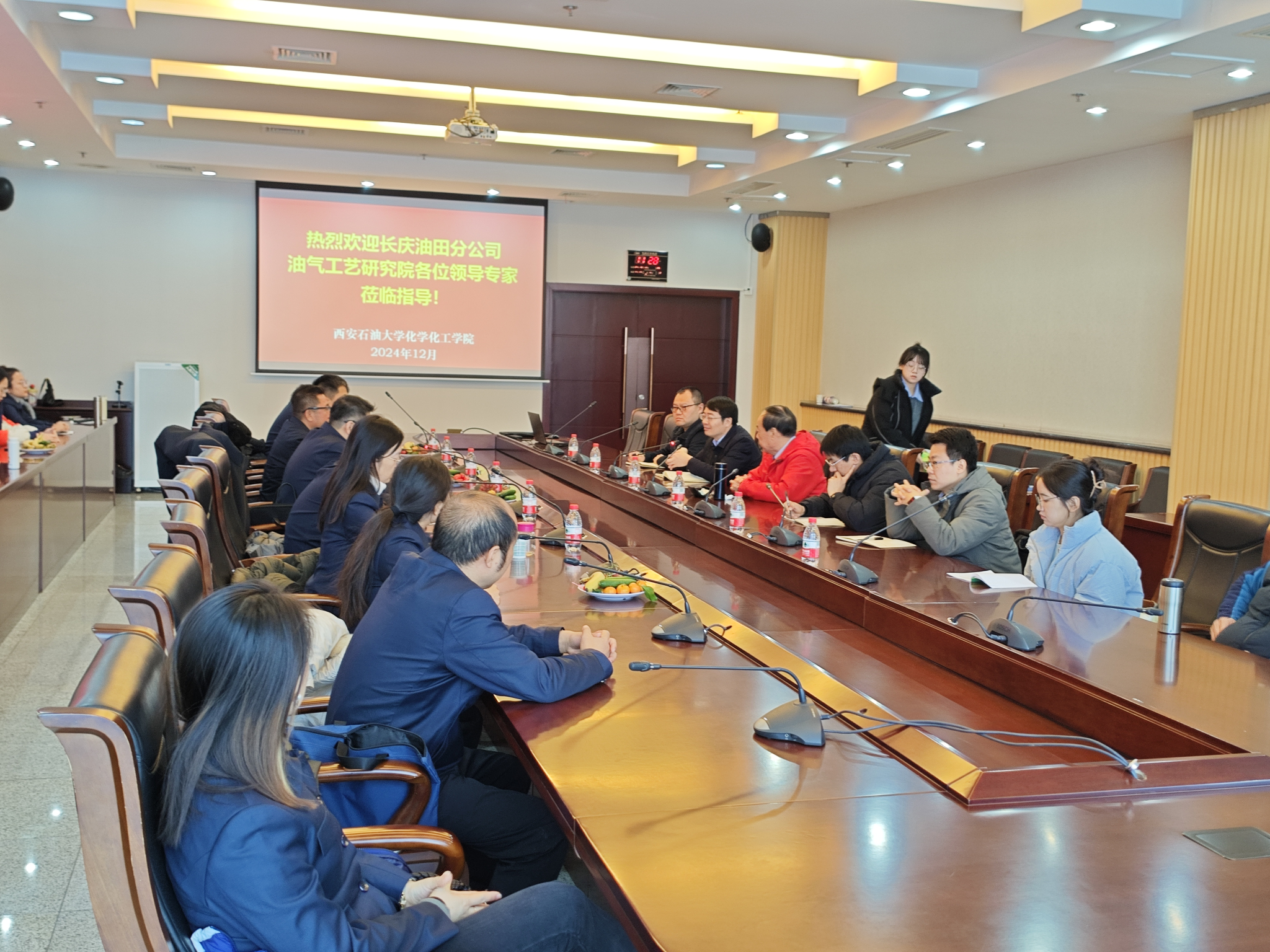 近日,长庆油田油气工艺研究院新能源技术研究所徐自强书记、安全环保技术研究所穆谦益书记一行来我院进行走访交流,深入探讨了党建业务融合、校企技术合作等相关事宜。化学化工学院党委书记高小明、副院长范峥和部分教师代表参加了座谈交流。