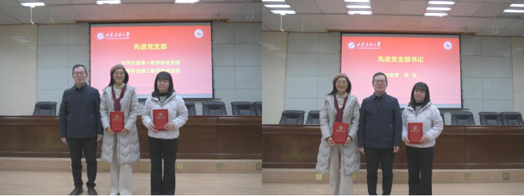 会上,学院党委副书记邱岭宣读了表彰决定,授予毕莹等32名教师“先进教师”荣誉称号,授予大学外语第一教学部等4个系部和党支部“先进集体”荣誉称号,同时授予李雪梅等4名教师“先进系部主任和党支部书记”荣誉称号。随后,学院党委书记张建高、副书记邱岭、副院长陈武及工会主席王文峰为获奖教师颁发了荣誉证书,并合影留念。